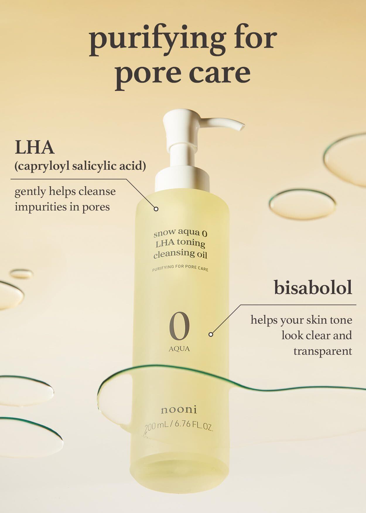 NOONI 韓国クレンジングオイル - スノーアクア 0 LHA トーニング 毛穴ケア 韓国洗顔オイルクレンザー, 6.76 fl.oz|メイクダブルクレンジング, ガラス肌, 卵肌, 黒ずみケア, 顔用毛穴クレンジングオイル