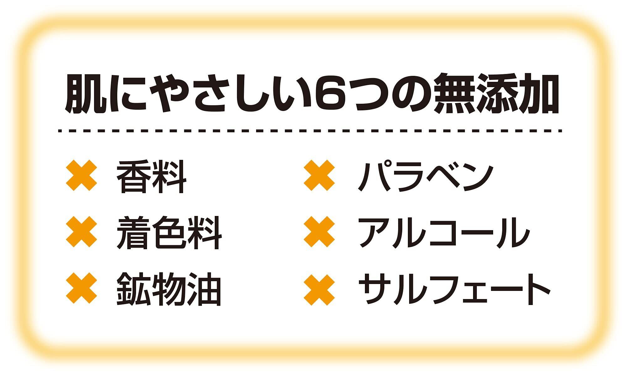 肌想いの6つの無添加(香料・パラベン・着色料・アルコール・鉱物油・サルフェート)です。