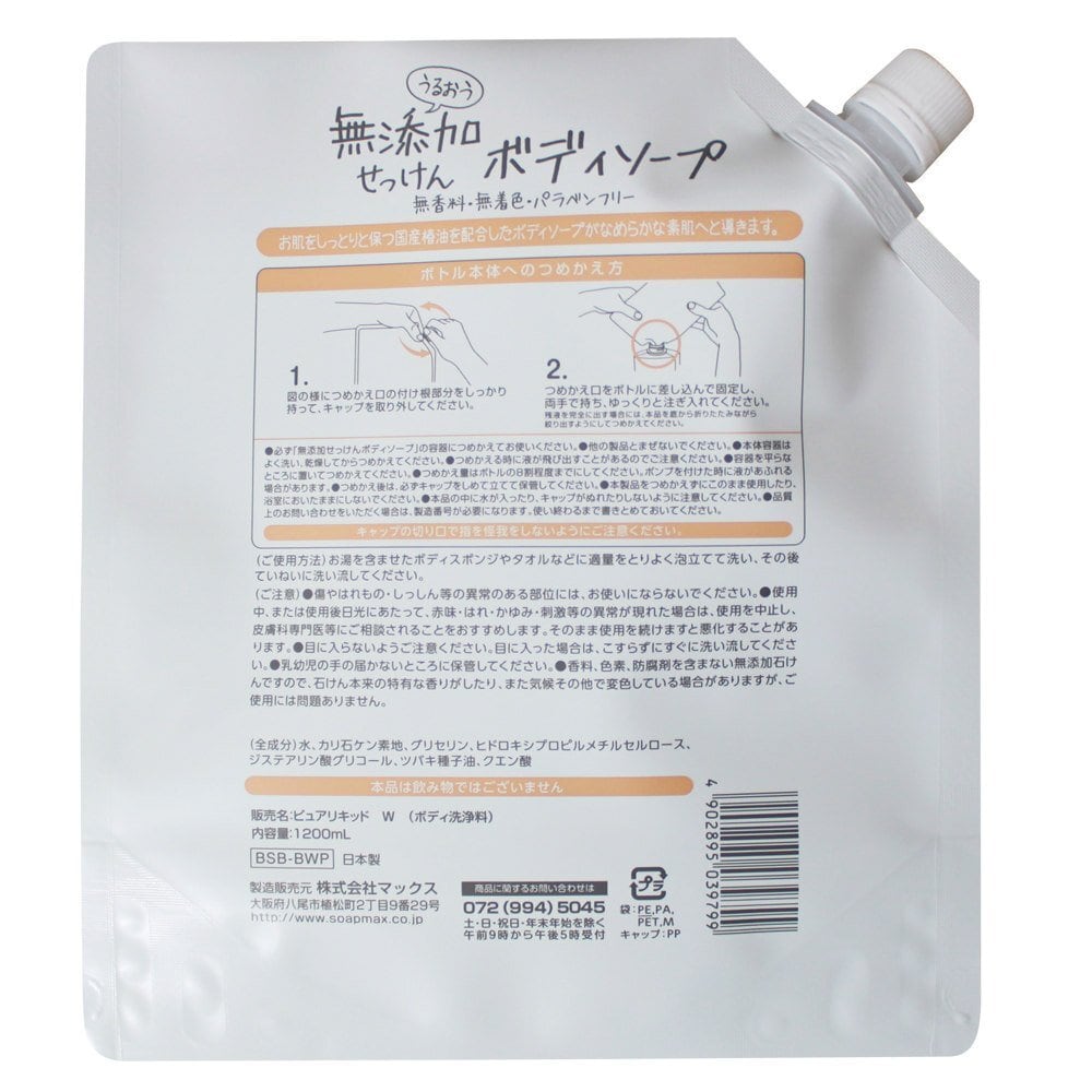 マックス うるおう無添加ボディソープ 大容量 つめかえ用 1200mL