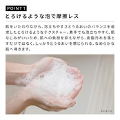 【とろけるような泡で摩擦レス】肌をいたわりながら、泡立ちやすさとうるおいのバランスを追求したとおけるようなテクスチャー。素手でも泡立ちやすく、肌なじみがいいため肌への負担を抑えながら、皮脂汚れを落とすだけではなく、しっかりとうるおいを漢字られる、なめらかな肌へ導きます。