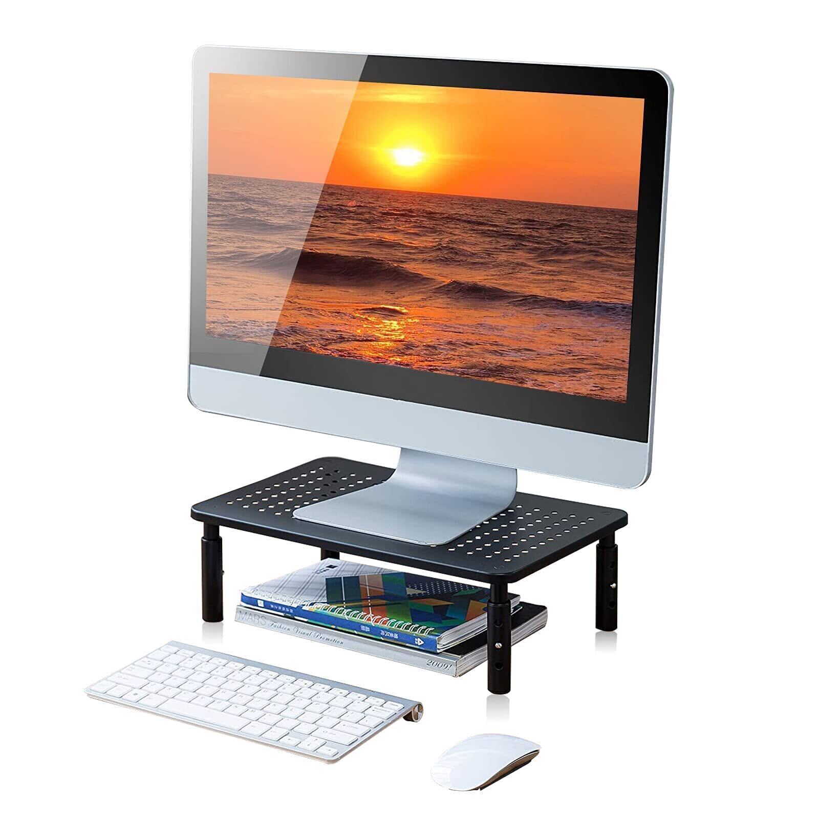【丈夫で安定性抜群】頑丈なスチール製で、しっかり物を支えます。脚の下部にはゴムパッドがあるので、滑り止めることができて、傷を防止することもできます。20kgまでのノートパソコンとモニターを載せることができます。