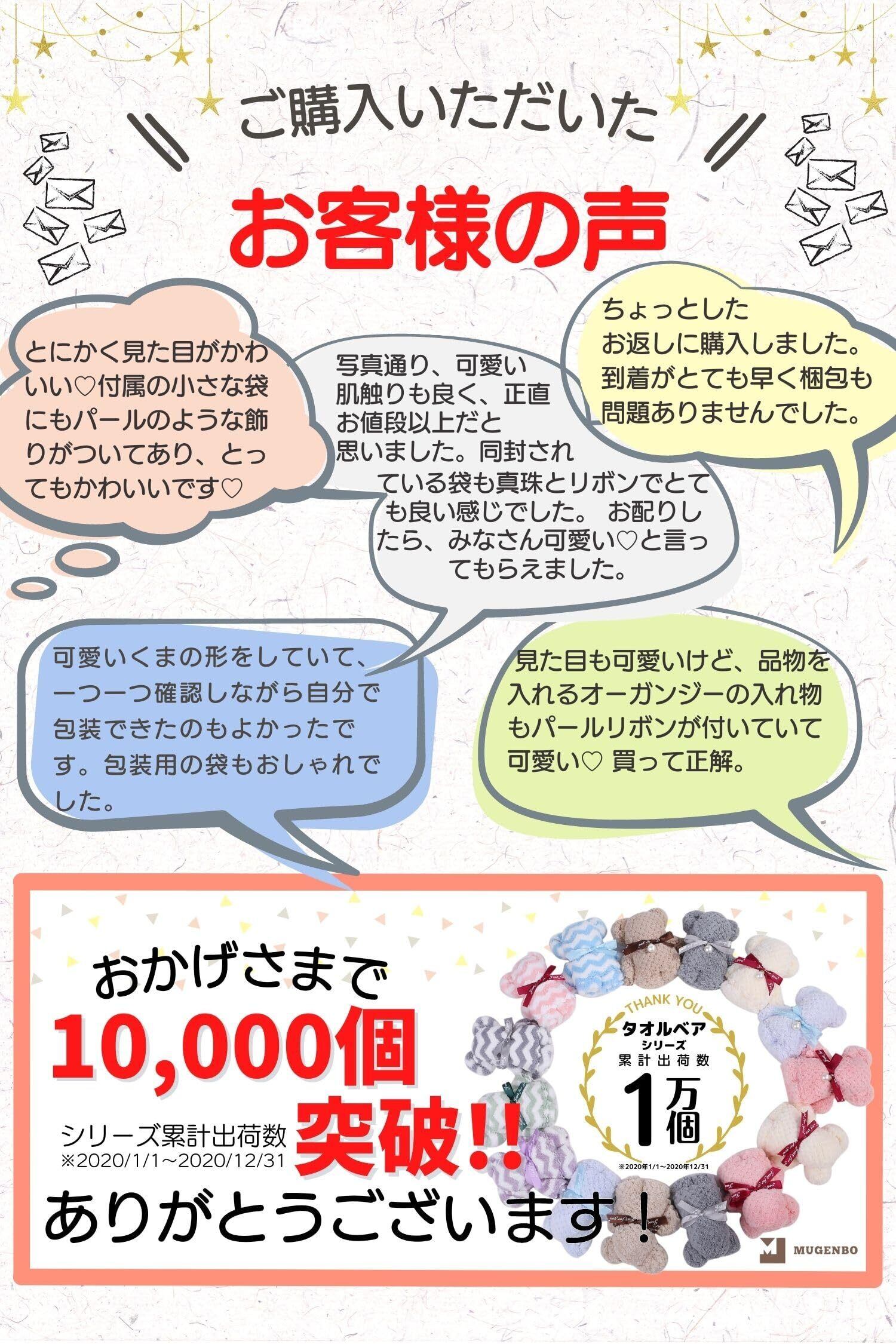 プチギフト 退職 【ほんの気持ちにぴったり】 タオルベア ギフト お礼 ベア クマ タオル タオルハンカチ ハンカチ レディース お返し 粗品 退院 サンキューカード オーガンジーラッピングバック付き 5個 8個 10個 (パールくまちゃん) 10個 mugenbo