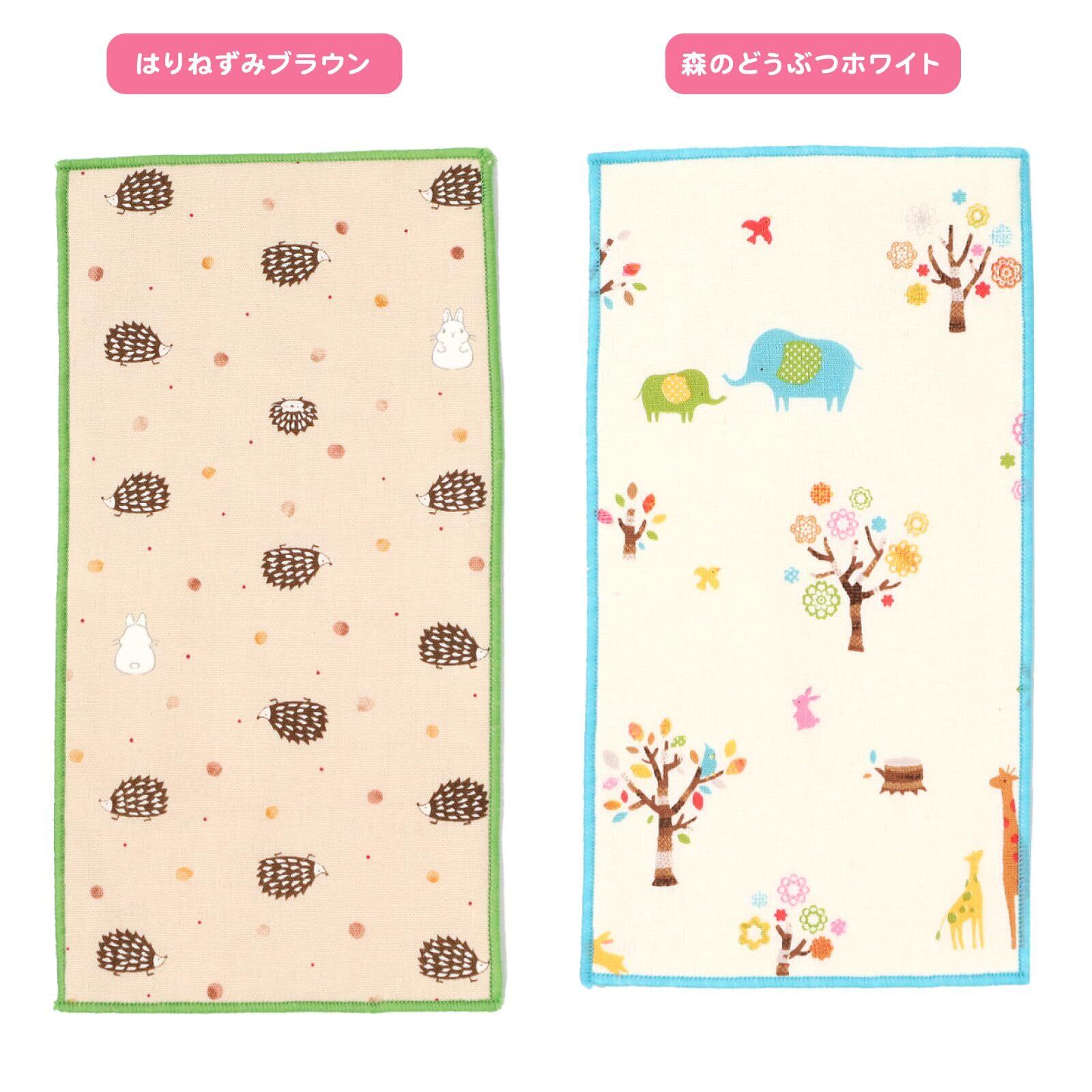【ハーフハンカチのみ6枚セット】どうぶつ柄4種(森のどうぶつホワイト・はりねずみブラウン・きりんホワイト・らいおんブルー)+ランダムで3種(ストライプピンクorミックスドロップターコイズorはミックスドロップホワイト)のうち2枚