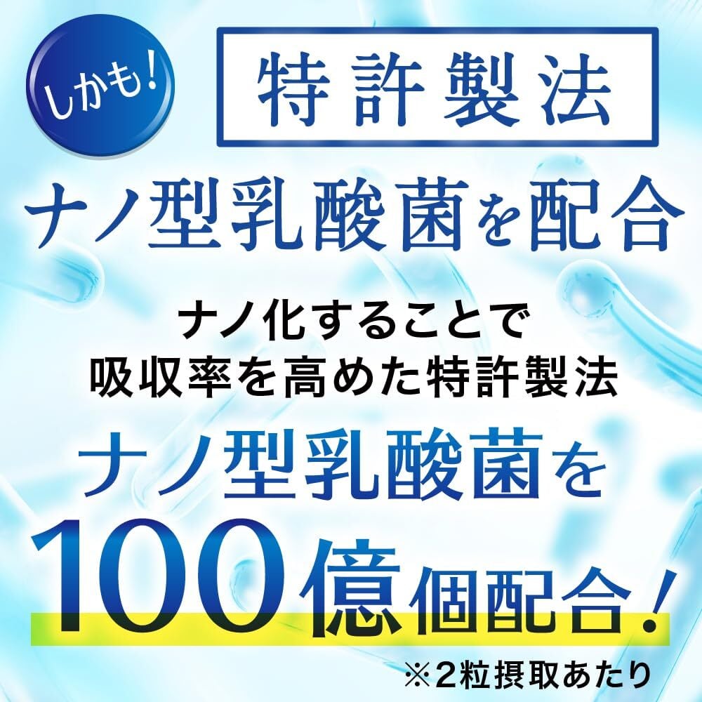 【こだわりの厳選成分をぎゅっと凝縮】 <甜茶> 古くから飲まれてれている甜茶の力! <製法・ナノ型乳酸菌> ヨーグルト10個分のナノ型乳酸菌を配合 ※2粒摂取あたり(ヨーグルト1個分(100g)あたり乳酸菌100億個を含む場合として算出 ) <亜麻仁油> スーパーフード亜麻仁油。 希少価値の高いベルギー産を使用!