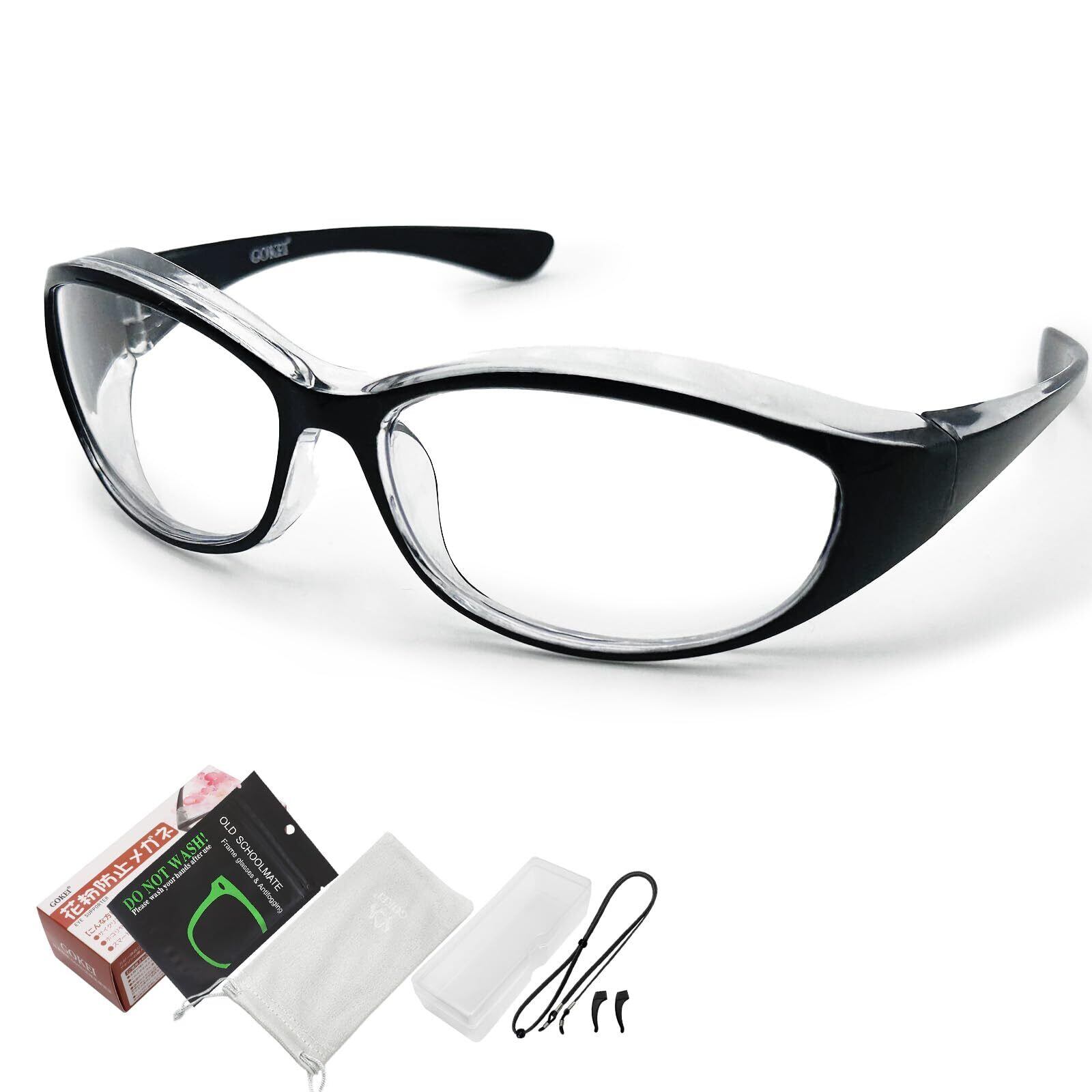 GOKEI 花粉防止メガネ 曇らない 花粉メガネ 【両面曇り止めレンズ ブルーライトカット】 花粉症 メガネ 飛沫防止メガネ 花粉症メガネ 花粉用 レディース メンズ 花粉症用 花粉対策 メガネ かふんしょうのメガネ 花粉症予防メガネ ブラック | kki