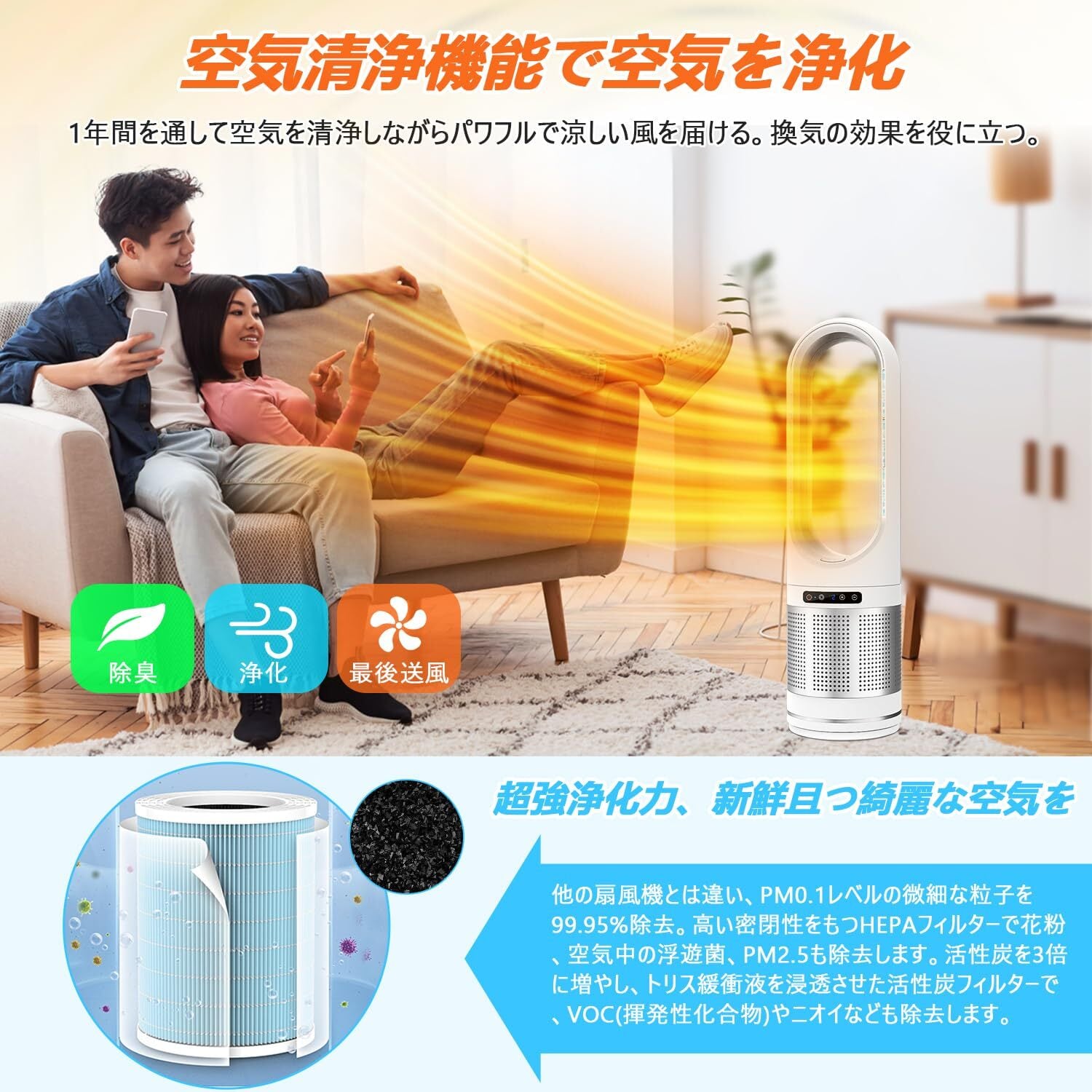 【2025最新進化・冷暖兼用・空気清浄 】セラミックヒーター 暖房器具 省エネ 電気 ファンヒーター 3段温風&8段送風 100°首振り 温度設定 強風&微風モード 9Hタイマー 静音 DCモーター 転倒&過熱OFF 空気清浄機 羽なし扇風機 リモコン付 セラミックファンヒーター 冷暖房 タワーファン 温風 冷風 四季適用 リビング/寝室/脱衣所/トイレ/衣類乾燥用 日本語説明書 (ホワイト)