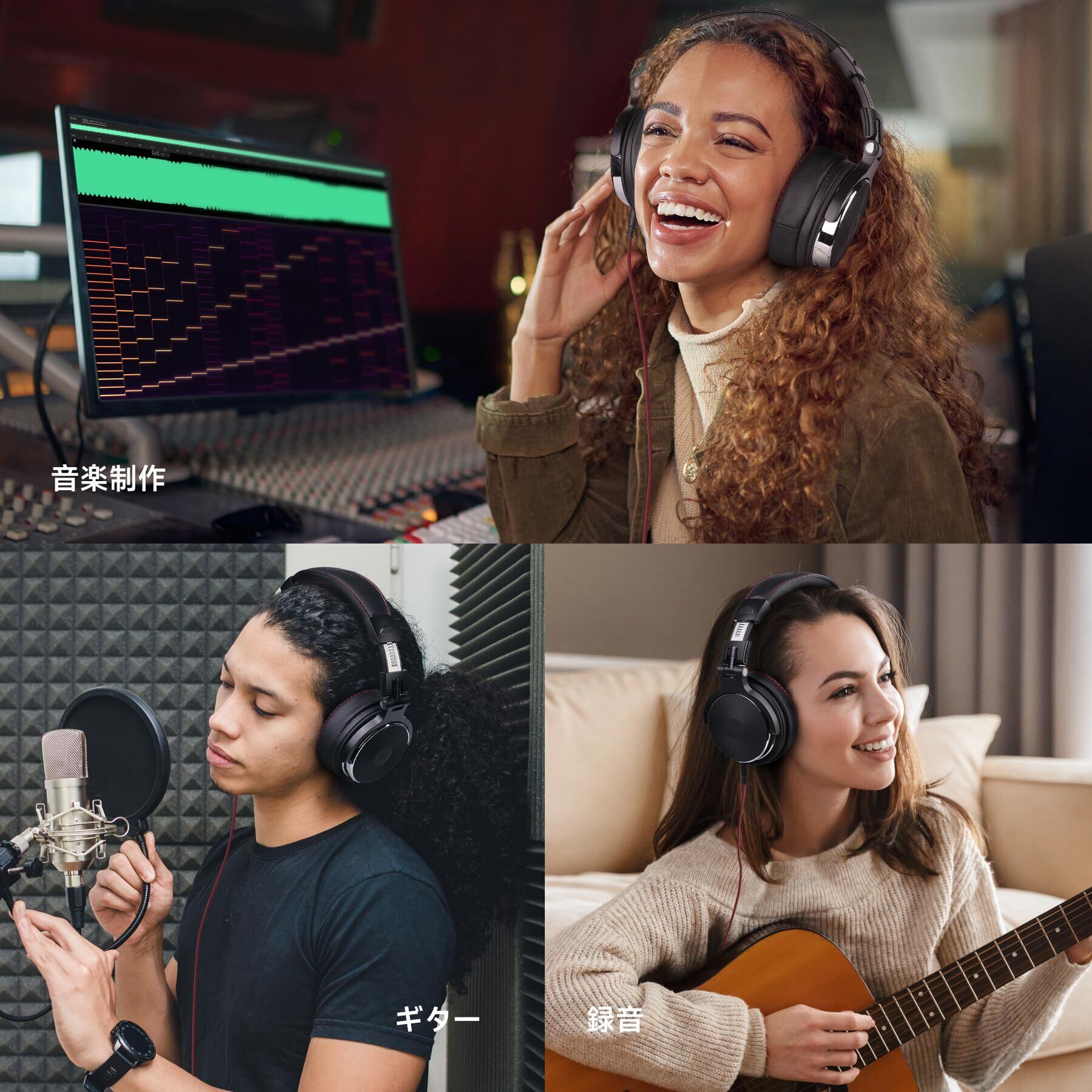OneOdio Pro50 ハイレゾ ヘッドホン 有線 50mmドライバー プロフェッショナル モニターヘッドホン DJ用 密閉型 スタジオ用/楽器練習/ミキシング/TV視聴/映画鑑賞 黒 | kki