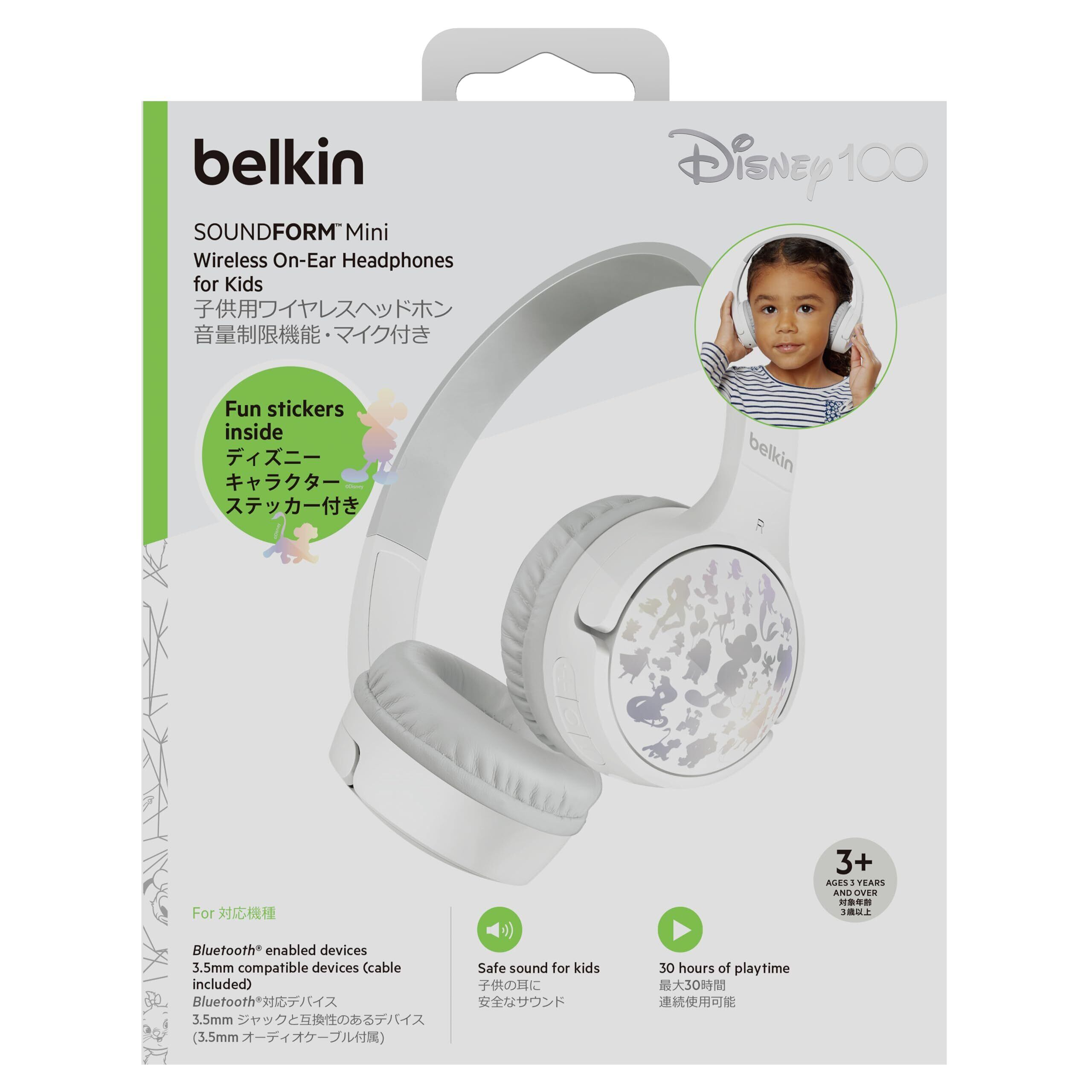 【ディズニー創立100周年】Belkin 子供用 ワイヤレスヘッドフォン ヘッドセット 通話マイク搭載 音量制限機能 ボイスチャット マイク付き 最大30時間連続再生 Bluetooth5.0 防水対応 有線接続にも対応(3.5mmオーディオケーブル付属) SOUNDFORM Mini ホワイト AUD002qcSL-DY | kki