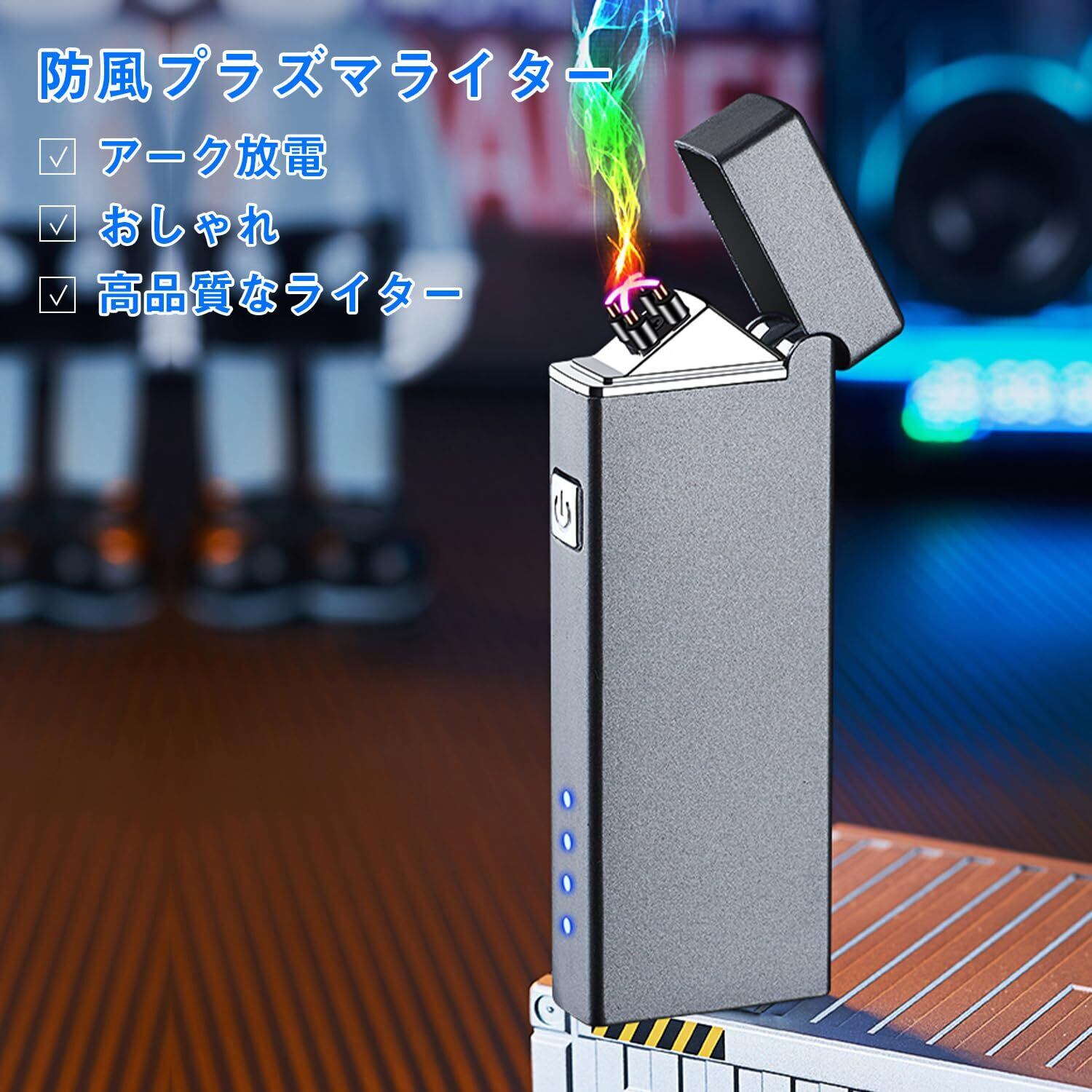 [バッテリー残量のLED付きで使いやすい]USB C充電式のプラズマライターです。フタを開くとバッテリー残量を示すブルーのLEDが光ります。個人的にタバコは滅多に吸いませんが、蚊取り線香や線香に着火用として、風の影響を受けない点が気に入りました。重量は思ったより軽く、持ち運びやすいと思います。マニュアルは付属しておらず、きれいな化粧箱に入って届きます。こちらは充電式なので車の中やモバイルバッテリーでも充電できるし、風があってもつくし、手に入れてよかったです。長持ちしてほしいなと思います。