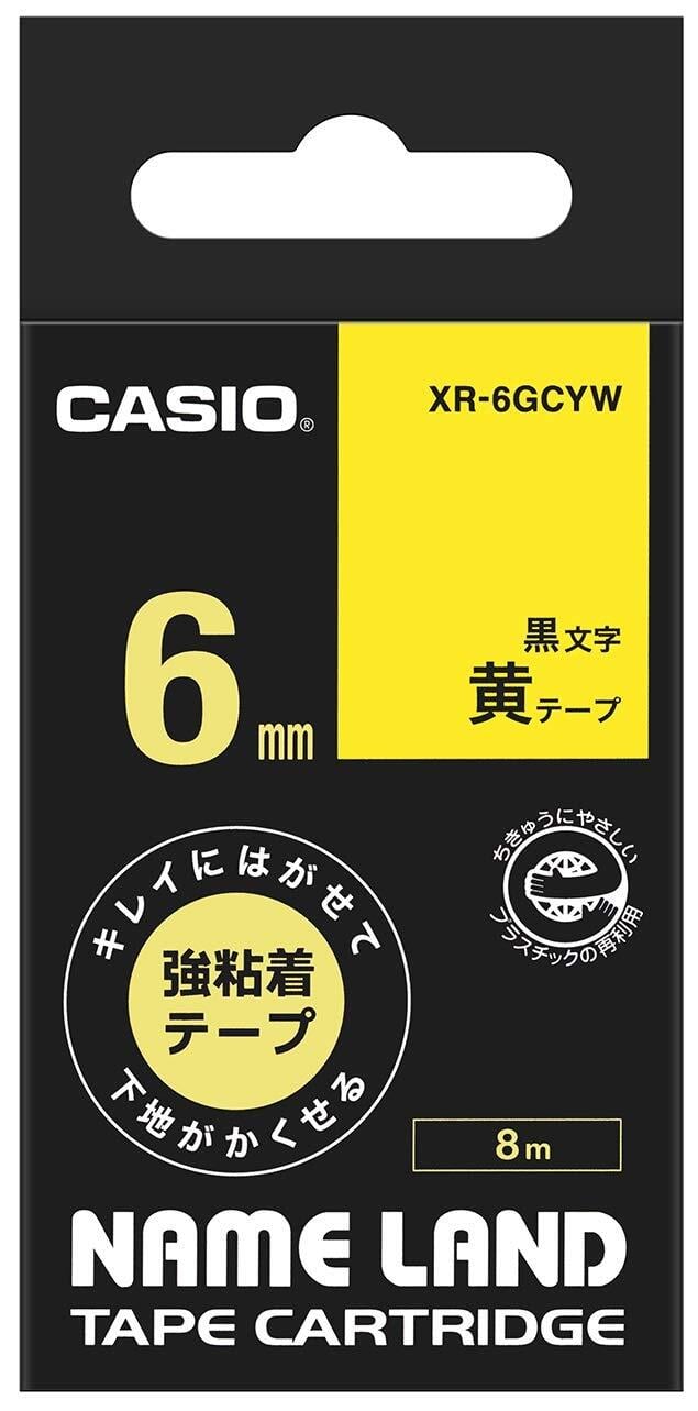 カシオ ラベルライター ネームランド キレイにはがせて下地がかくせる強粘着テープ 6mm XR-6GCYW 黄