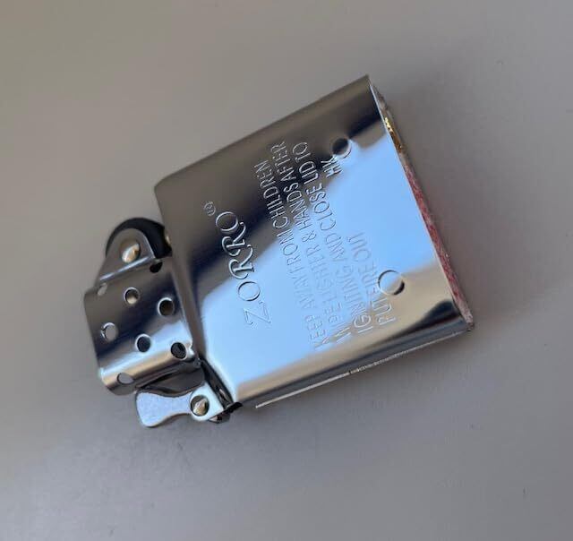 ZORROオイルライター インサイドユニット。寸法はジッポ社のものと同じですが、互換性はありません。ZORROのライターにはZORROのインサイドユニットをお使いください。ジッポのものを入れると抜けなくなります。ZORROのライターにもさまざまな種類があります。超重厚ライターもその一つで、刻印がない物も少なくありません。是非こちらのユニットをお試し下さい。パッケージから取り出し、表面のフィルムをはがしてお使い下さい。430ステンレス鋼で作られており、精巧で砥石は丈夫で耐久性があり、グラスファイバーの芯は油の吸収性に優れています。綿芯を上下に調整して炎の大きさを調整します。オイルは入っておりません。使用には別売りの液体オイル(ZORROオリジナルオイル推奨)が必要です。給油時はインサイドユニット底面のスポンジパッドを折って給油します。初回は8ミリリットルがベストな量です。繰り返し使用するとオイル量は自分でマスターできます。一般的にはオイルが綿に浸透したら十分です。 安全上の注意 1. お子様の手の届かないところに保管してください。 2. ライターに火をつけるときは、顔や衣服に近づけないでください。 3. オイルは付属していません。使用の際は液体オイルの注入が必要です。 4. 50℃を超える環境や、直射日光に長時間当てることは厳禁です。 5. 火元に突き刺したり、火に投げ込むことは固く禁じられています。 6. 使用後は炎が消えていることを確認してください。 7, ライターは自動消火できません。必ず蓋を閉じてください。 8, 目に見える炎の上は非常に高温です。やけどや火事に十分注意してください。ZORRO oil lighter inside unit. Take it out of the package, peel off the film on the surface, and use it. Made of 430 stainless steel, the precision whetstone is strong and durable, and the fiberglass core has excellent oil absorption. Adjust the size of the flame by adjusting the cotton wick up or down. Does not contain oil.