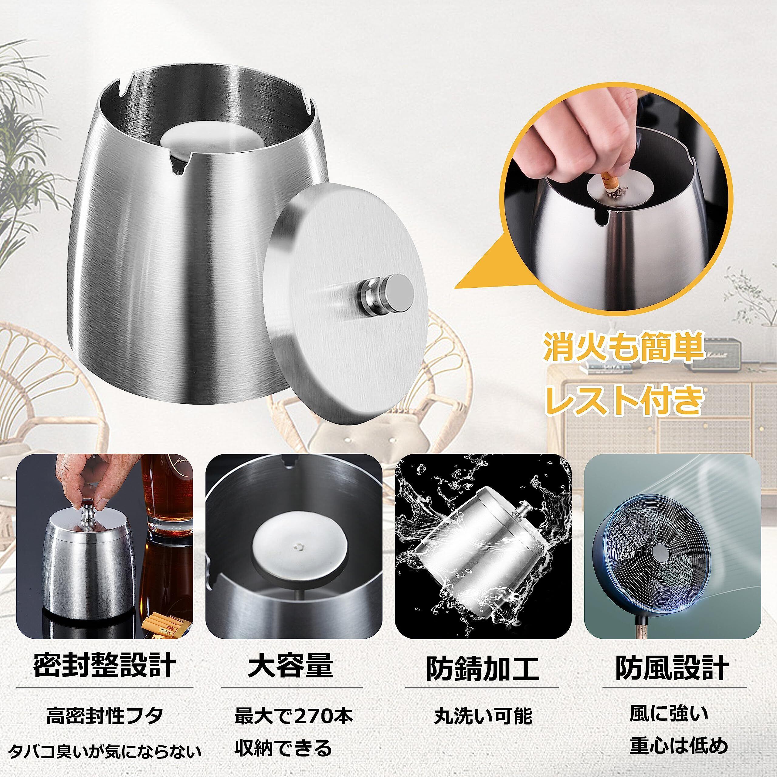 【アップグレード】灰皿 ふた付き ステンレス 大容量 洗いやすい 防風 防臭 密閉 はいざら 断熱パッド付き 屋外 シルバー EX-SPACE