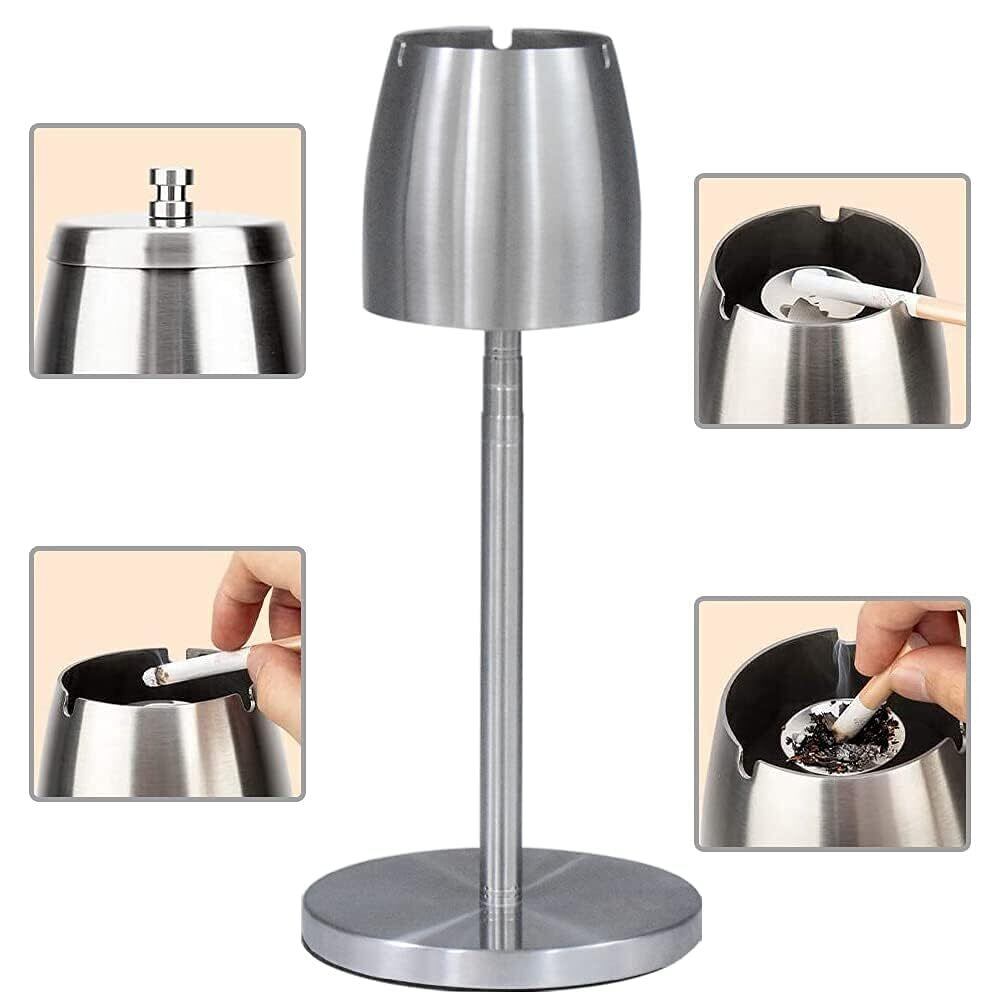Athvcht 灰皿 スタンド 灰皿 臭わない 蓋付き 室内 屋外 約45cmー75cmに高さ調整可能 伸縮式チューブ 吸い殻入れ 灰皿 ステンレス製 大容量 静音設計 滑り止め付き 卓上 屋外 室内 兼用 防風 防臭 密閉 洗いやすい ステンレス 屋外 屋内 兼用 | kki