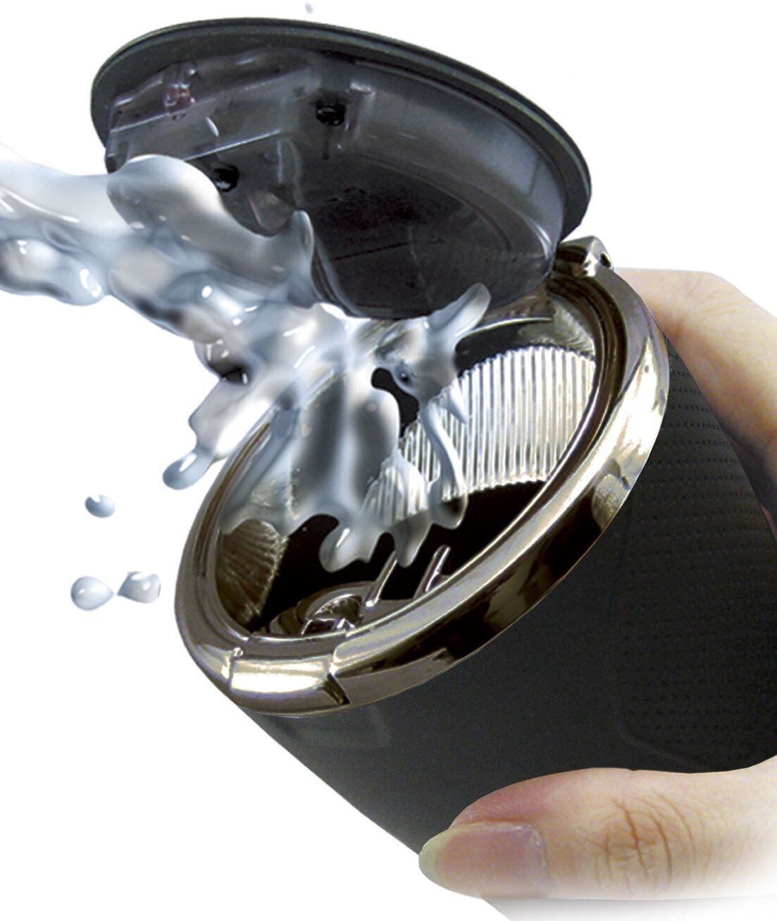 簡易防滴構造により丸洗い可能。 タンブラー形状だから開口部が広く灰が捨てやすい。 タバコが揉み消しやすいスリバチ形状の火消し。 ワンプッシュオープンタイプ。 差し込むだけで消火できる1アクション火消し口を2個装備(ツマリ防止機能付き)。 パッキンを使用し、フタを閉じた際のタバコの煙やニオイ漏れを軽減。 フタを開けると周りの暗さに反応し、自動でブルーLEDが点灯(明暗判別機能)。