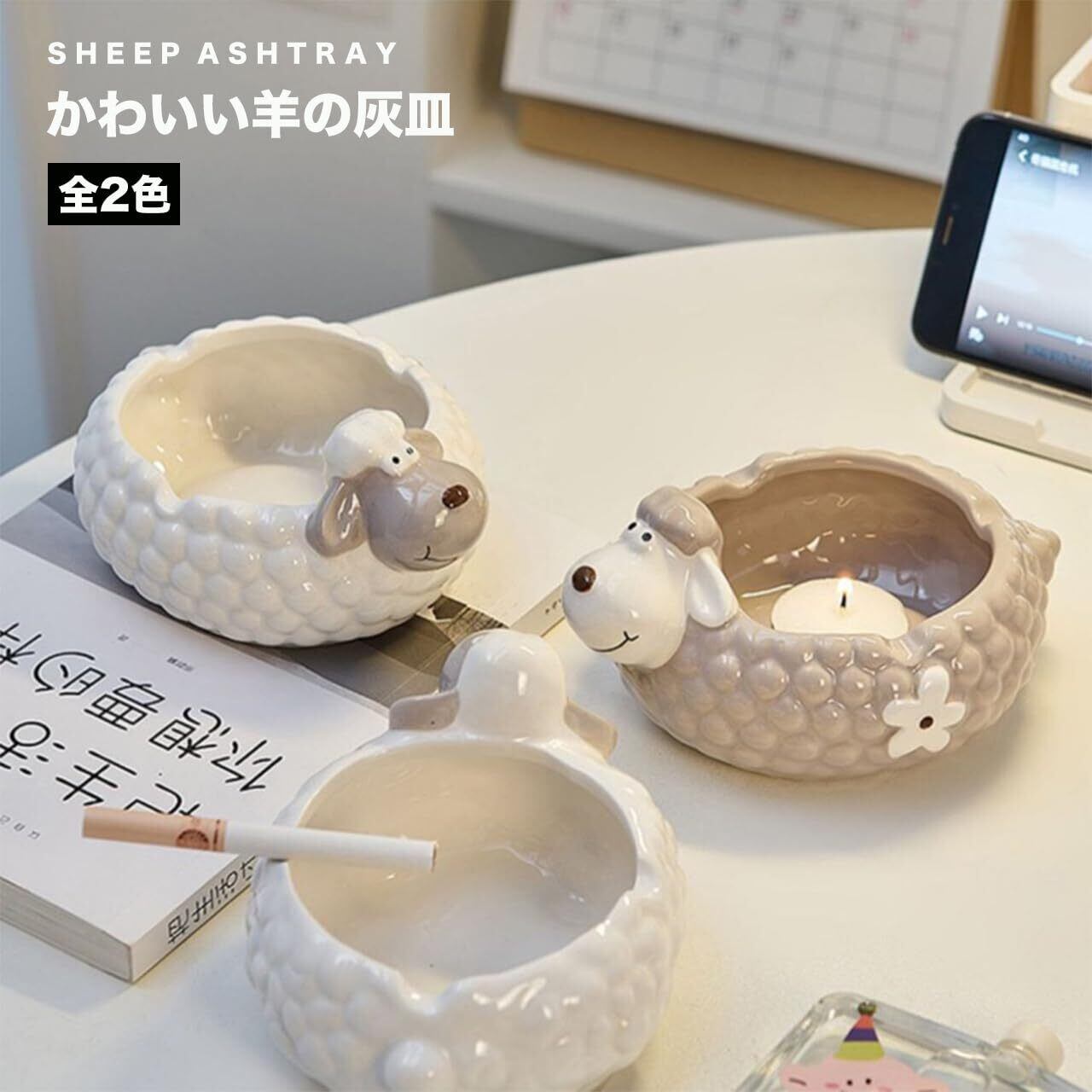 [Queen-b] 灰皿 羊 ひつじ かわいい 卓上 テーブル おしゃれ インテリア タバコ 煙草 洗いやすい 喫煙 グッズ アシュトレイ 小物入れ 収納 トレイ (ホワイト)