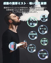 【厳選された人気3風味&吸い応え抜群】ミントアイス、グレープアイス、コーラアイスのフレーバーから厳選された人気風味、それぞれの味わいの特徴がはっきりしていて、好みに合った風味を選びましょう!独自改良したメッシュコイルでリキッドが急速に蒸気化し、濃密なミストがリアルな風味を生み出してくれます。 しっかりとした豊富な煙(水蒸気)の量も楽しめます。他の電子タバコと比べて爆煙で吸い応えが抜群です。