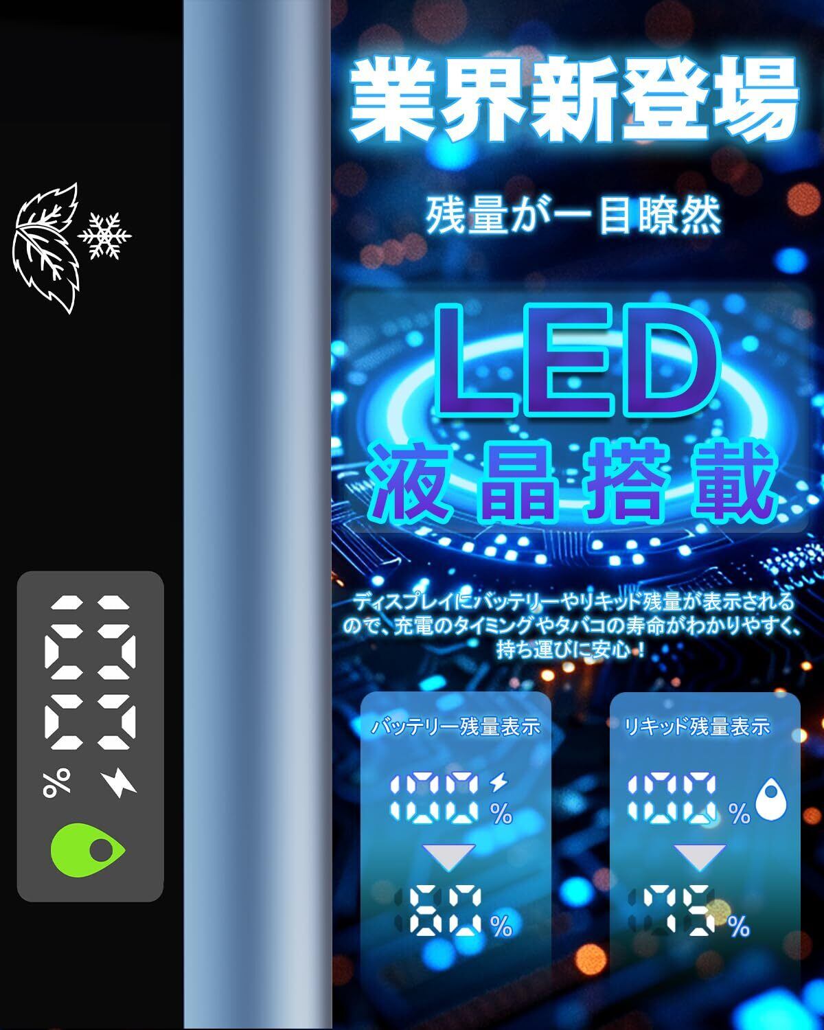 【業界新登場 LEDディスプレイ搭載の高性能使い捨て電子タバコ】最新開発したLEDディスプレイが搭載される使い捨て電子タバコが登場!ディスプレイにバッテリー残量、リキッドの残量がひと目で分かるので、突然リキッドがなくなったり、外出先で電源が切れたりする心配がありません。充電タイミングもすぐ分かります。安心して使用いただけます。
