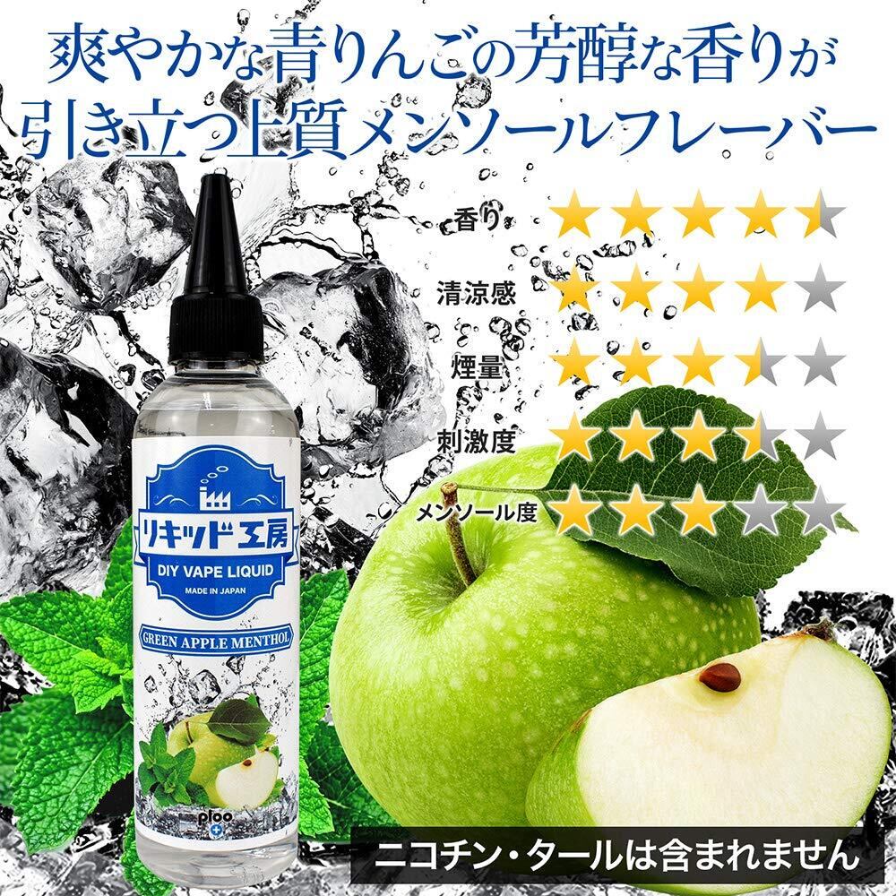 【大容量120mlシリーズ】最高品質の天然素材日本ハッカを使用し厚生労働大臣指定の食品添加物のみ100%配合。 爽やかな青りんごの芳醇な香りが引き立つ上質メンソールフレーバー 独自の製法により監修、製造した本格派フレーバーリキッドです。安心安全な日本国産 のリキッドは全て日本国内の衛生管理の行き届いた工場で製造しております。ニコチン・タールは、含まれません。