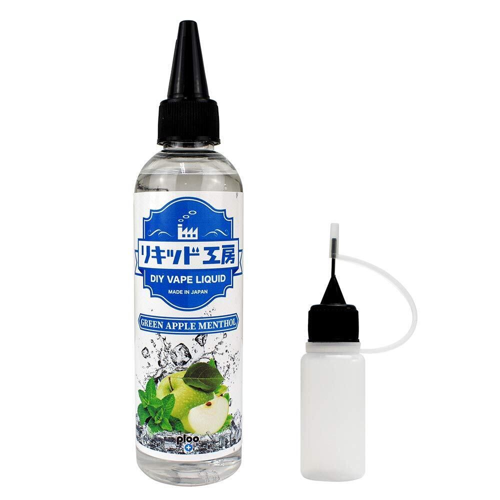 プルプラ 国産 電子タバコリキッド VAPE(ベイプ)リキッド 大容量 120ml 日本ハッカ使用 便利な目盛付きボトル ニードルボトル 10ml付き (青りんごメンソール)