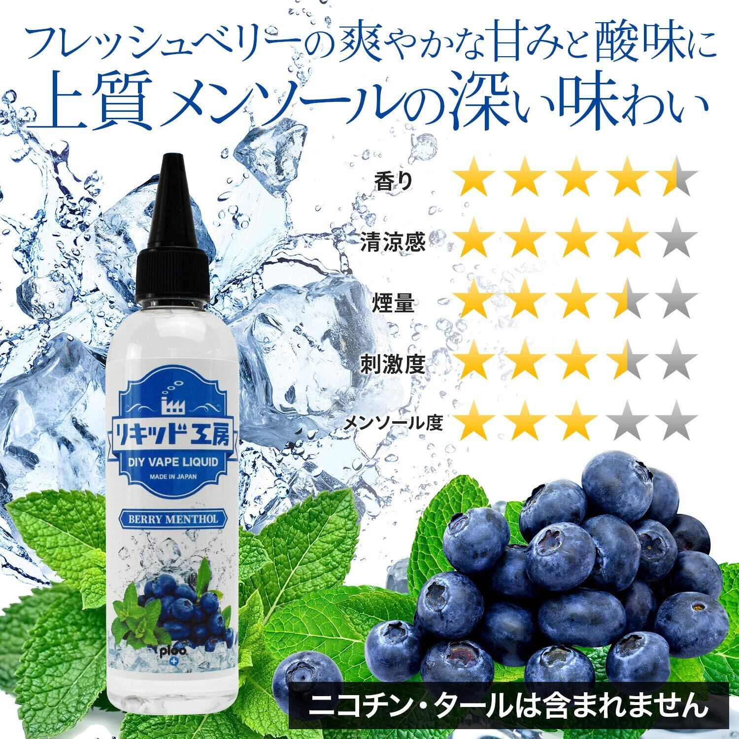 【大容量120mlシリーズ】最高品質の天然素材日本ハッカを使用し厚生労働大臣指定の食品添加物のみ100%配合 フレッシュベリーの爽やかな甘みと酸味にメンソールの爽快感 独自の製法により監修、製造した本格派フレーバーリキッドです。安心安全な日本国産 のリキッドは全て日本国内の衛生管理の行き届いた工場で製造しております。ニコチン・タールは含まれません。