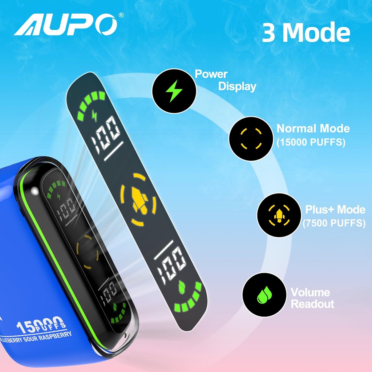 AUPO使い捨て電子タバコG19喫煙タバコVAPE電子タバコVAPE、LEDディスプレイ画面では、バッテリーの効率と電子タバコオイルの量を表示することができ、充電式電子タバコ、2つの速度調整モード:7500/15000パフ 禁煙減煙サポート TYPE-C充電可 大容量でんしたばこ ニコチン タールゼロ 液漏れ防止 フレーバー (ブルーベリー・サワー・ラズベリー)