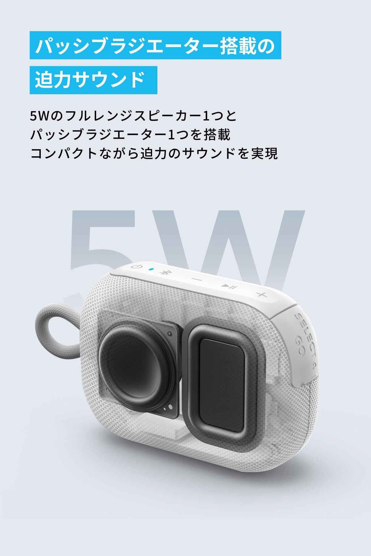 Anker Soundcore Select 4 Go bluetooth スピーカー【最大20時間再生 / 5W出力 / パッシブラジエーター搭載 / IP67防塵防水規格 / ワイヤレスステレオ対応】ホワイト