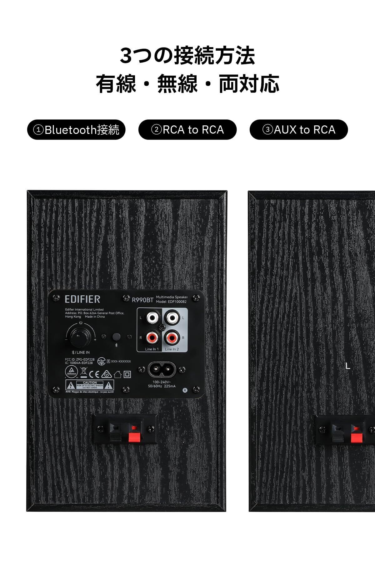Edifier R990BT 2ch スピーカー Bluetooth 5.4 最大24W出力 3つの入力系統(RCA/AUX/Bluetooth) アンプ内蔵 専用アプリ カスタマイズ可能なイコライザー 有線 外付け 重低音 大音量 ブックシェルフスピーカー PC/スマホ/テレビ