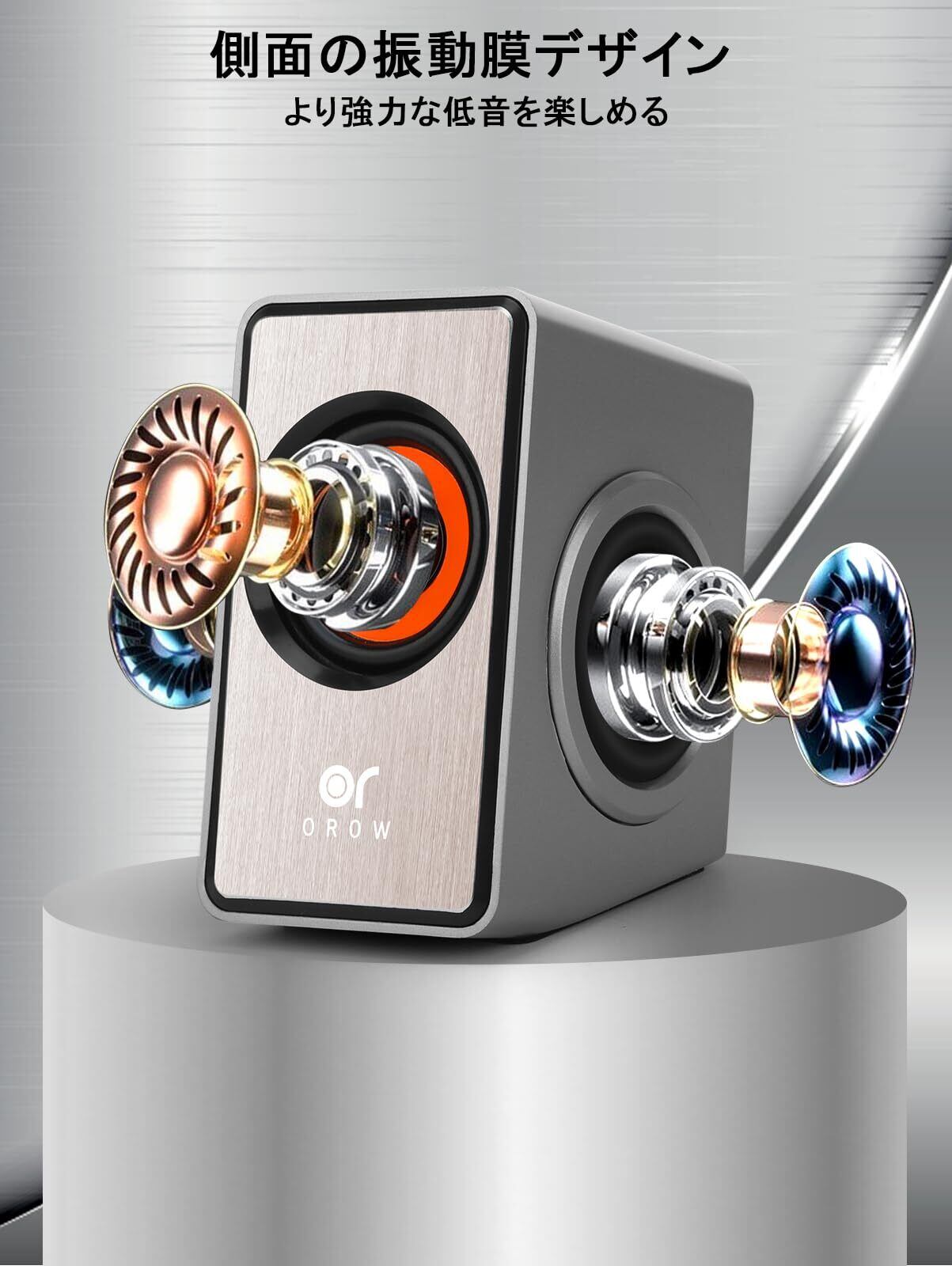 OROW PCスピーカー小型 10W出力パソコン スピーカー usb接続 ノートパソコン 外付けスピーカー ラップトップ/モニター用(銀)