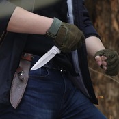 【フルタング構造】ブレードを挟み込んだ堅牢なフルタング構造で、グリップ材質は天然ウッド材で手に優しくて、質感があります。ブレード背中に滑り止めの角度をデザインしています。