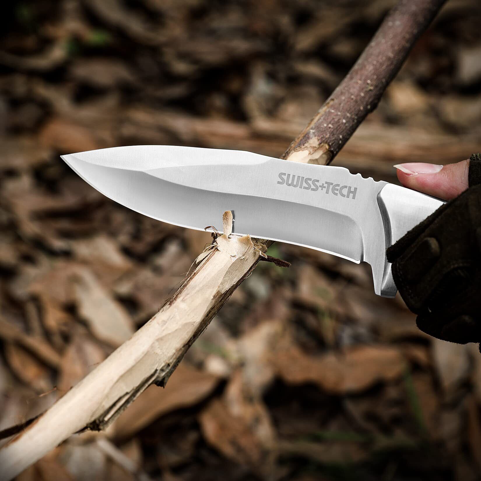 SWISS+TECH シースナイフ フルタング構造 天然ウッドハンドル 全長25cm シース付き 薪割り 釣り 登山 キャンプ キャンピング サバイバル アウトドアナイフ