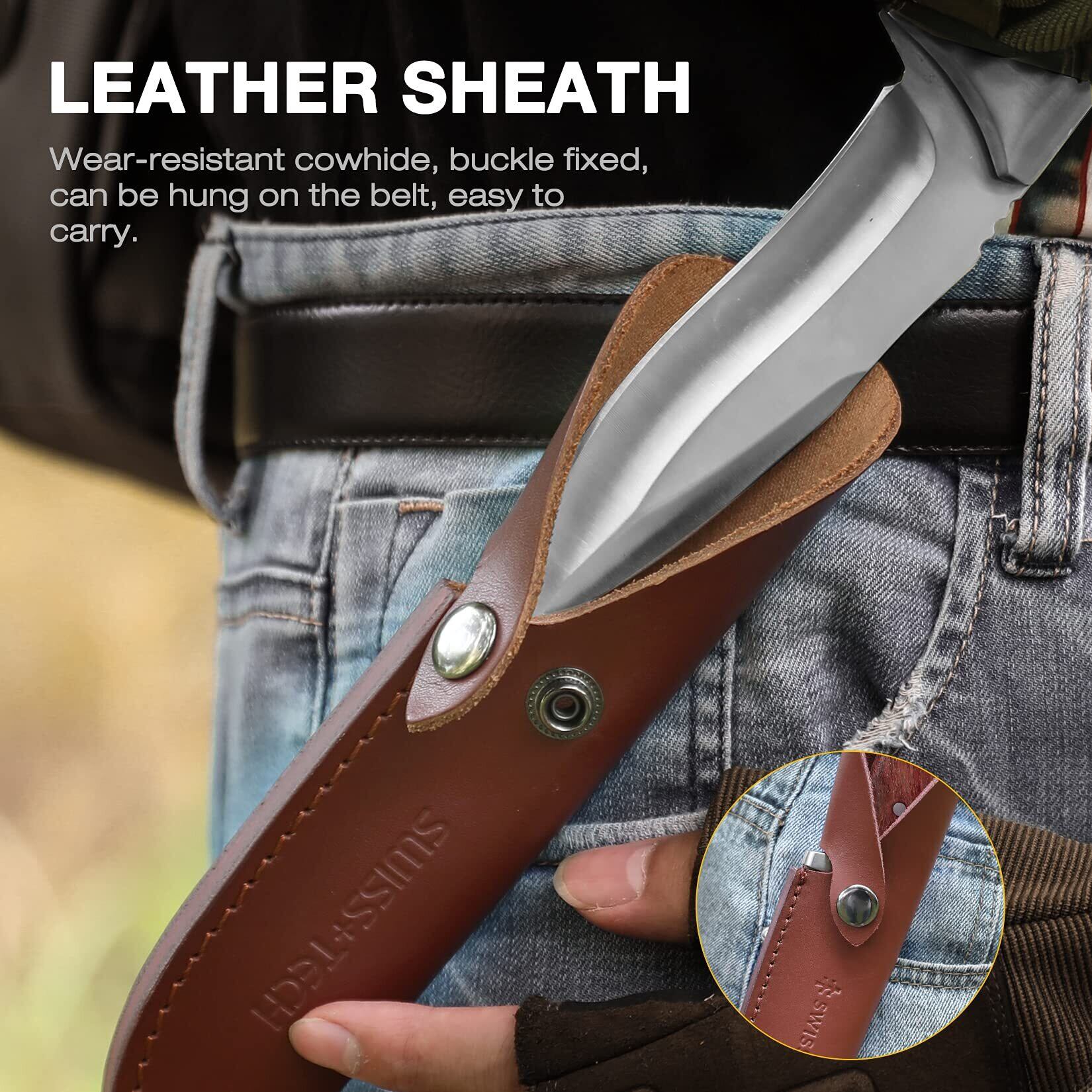 【仕様】全長: 25cm、刃体長さ:12.2cm、素材:SWISS+TECH シースナイフはステンレス鋼を採用して、耐久性が良い、ハンドル:天然ウッド 、重量:230g