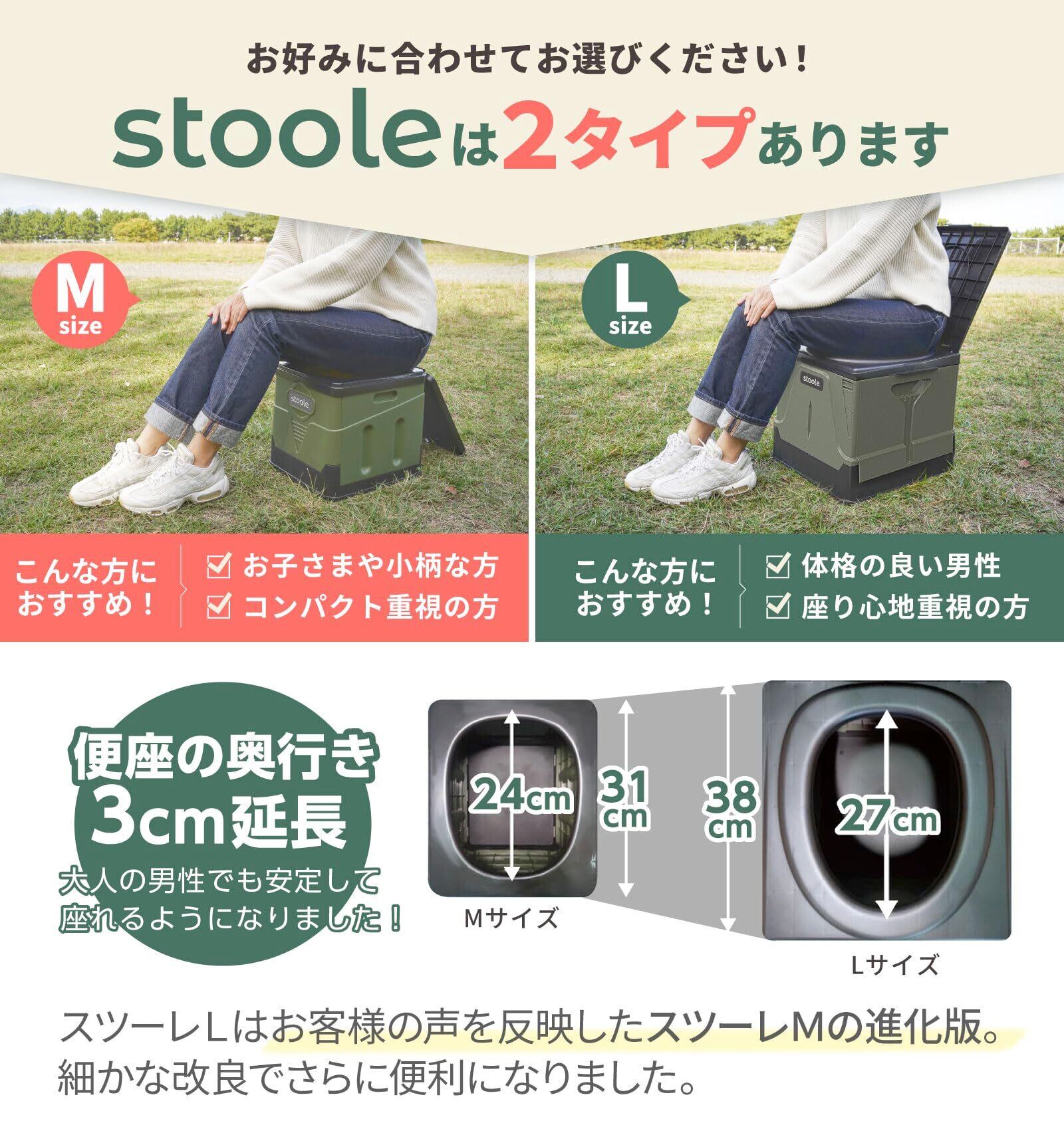 【お客様の声をもとに改良しました!】ダジエの 簡易トイレ 、スツーレが更に使いやすくなって帰ってきました!男性でも用を足しやすいように便座の奥行を3㎝延長、高さを5㎝アップしました。また便座に丸みを設けて座りごこちも洋式トイレ並みに快適に。蓋もつまみ部分を付けてさらに開けやすくなりました!