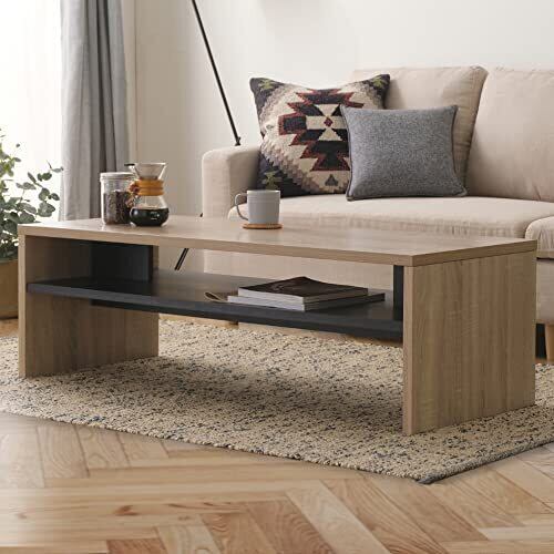 アイリスオーヤマ リビングテーブル テーブル デスク センターテーブル ローテーブル 収納 棚付き LTB-1190W ライトナチュラル 幅119cm