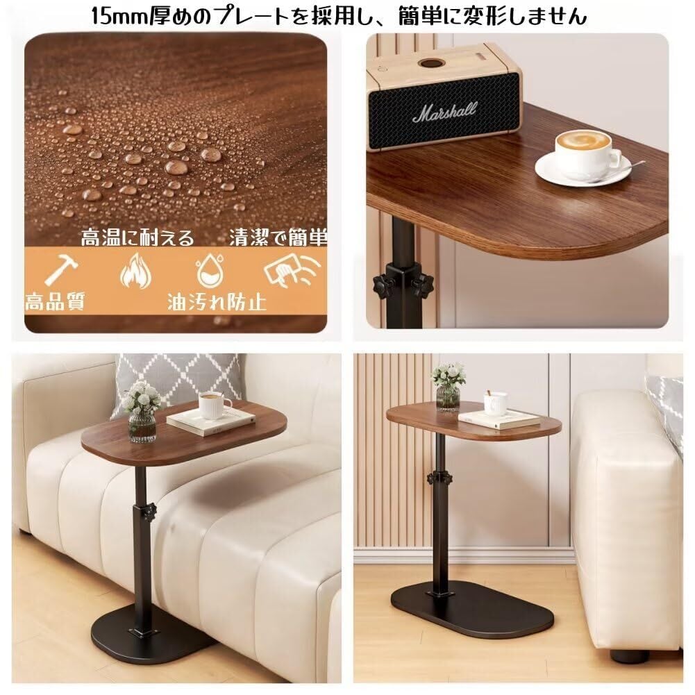 サイドテーブル 昇降式 ベッドサイドテーブル 回転 ソファーテーブル 介護テーブル 高さ調整 耐水 高温に強い 安定 耐荷重がいい 耐久性 小型 省スペース C字型 組立簡単 小型家具 家用 (くるみ色+ブラック, 40*30*45-80CM)