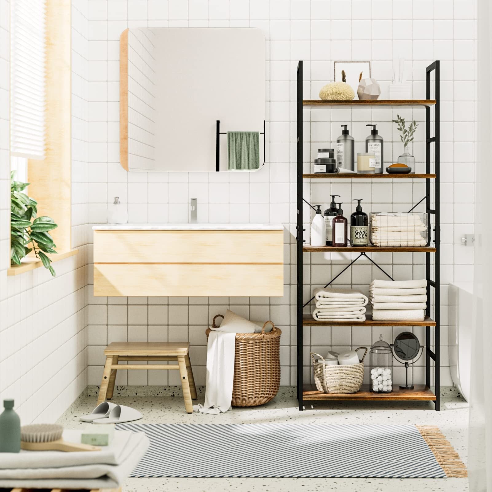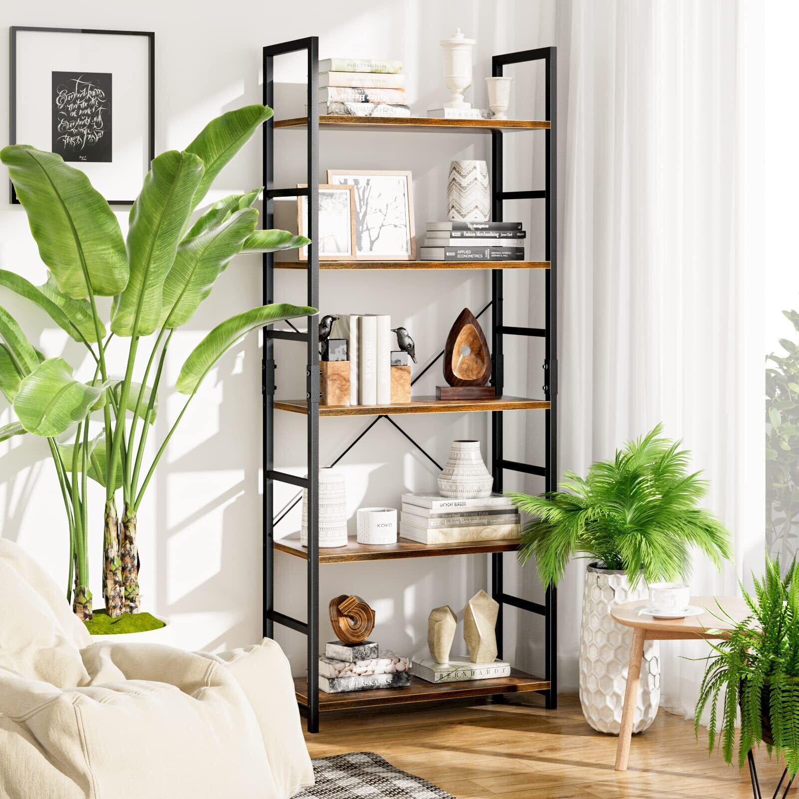 APPOLYN オープンシェルフラック、5段本棚フリーラック棚、多機能収納ラック、幅60×深さ30×高158cm、木製ラック、寢室、リビングルーム、ホームオフィスなどで使用できます、レトロ | kki