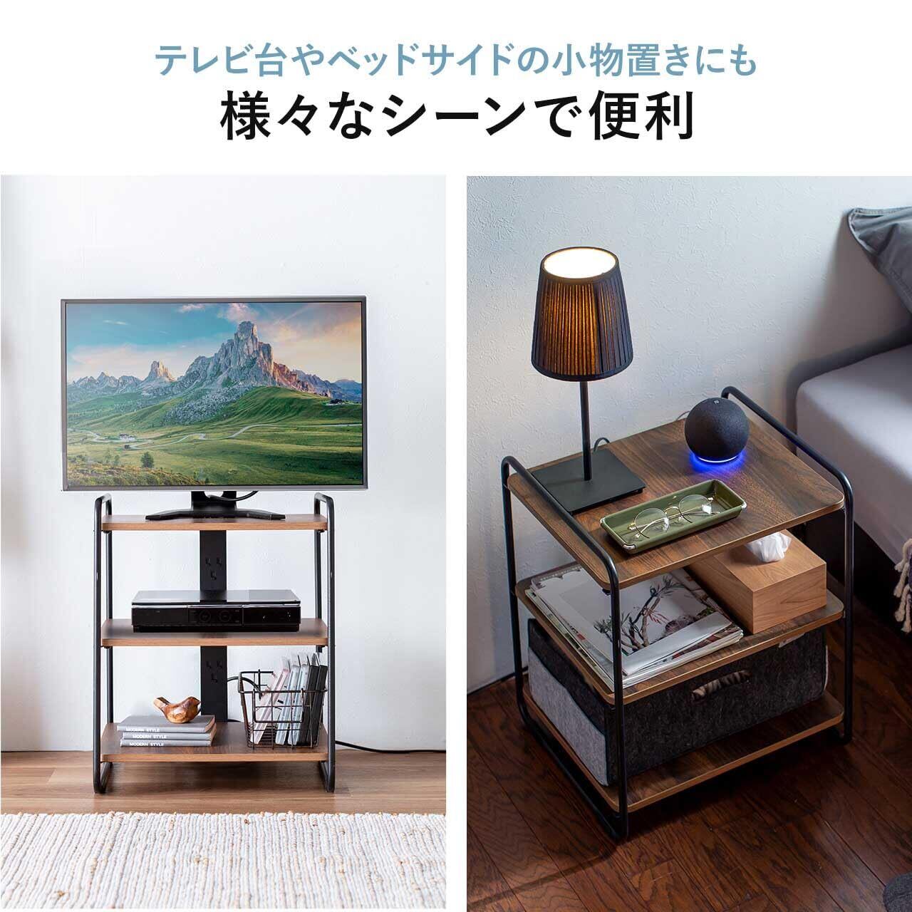 サンワダイレクト オーディオラック オープンシェルフ 3段 木製 幅40cm 総耐荷重90㎏ タップ受け付 収納 ラック ゲームラック AVラック ブラウン 100-PL033M