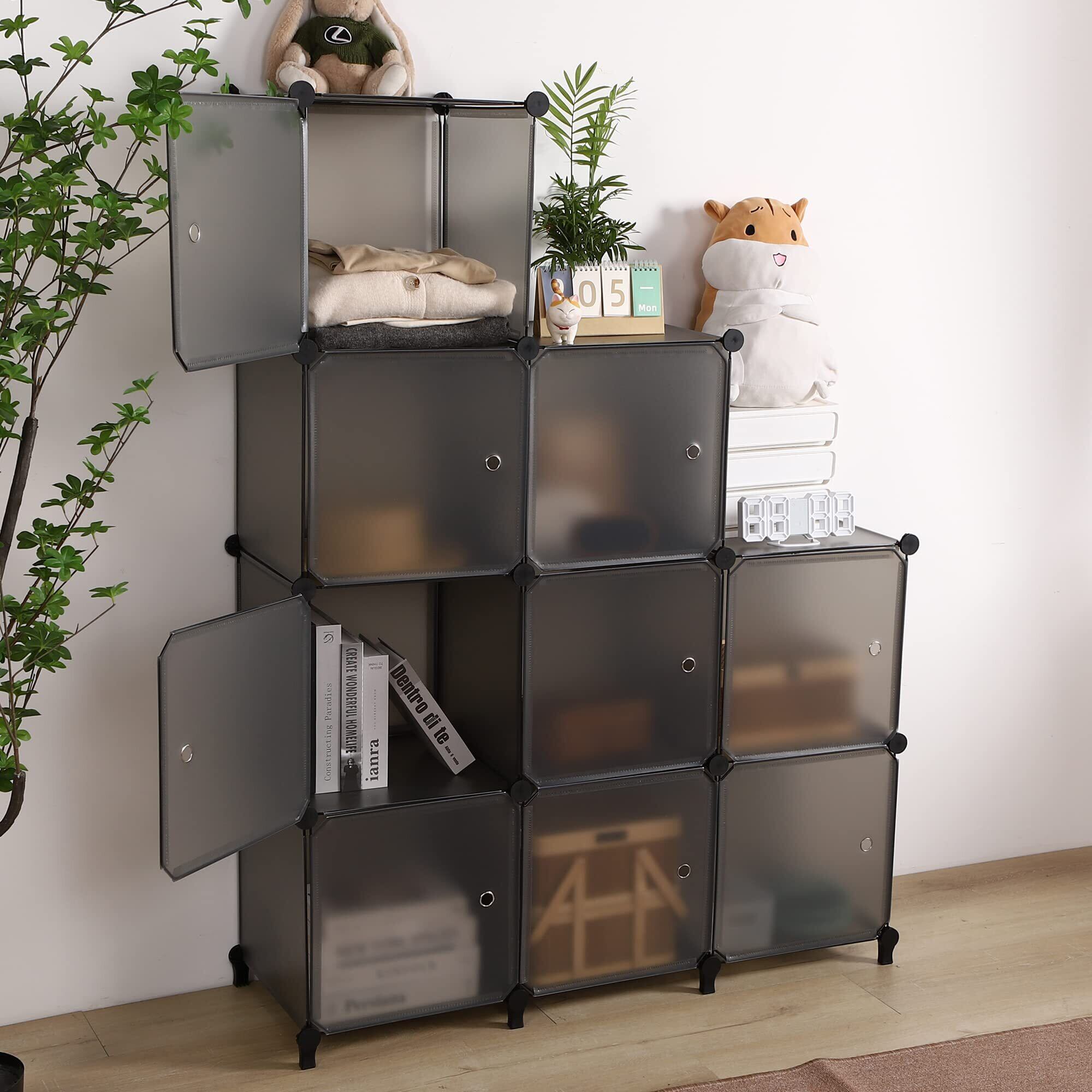 【 限定】チチロバ(TITIROBA) 収納棚 扉付き 収納 ラック 棚 簡単組立 大容量 整理棚 洋服棚 収納ボックス クローゼット ワードローブ おしゃれ 省スペース 多用途 半透明 クリア ブラック 9ボックス | kki