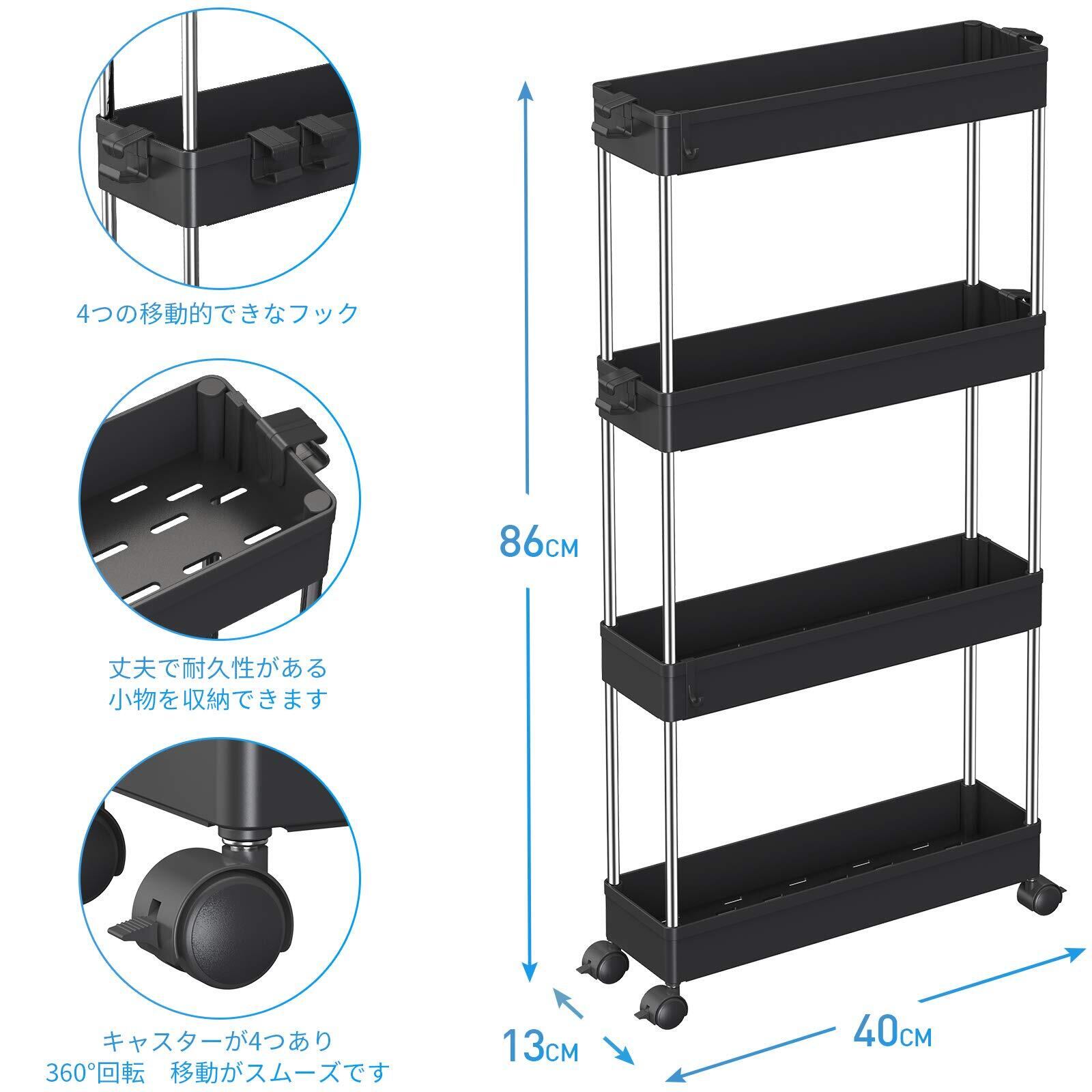 SPACEKEEPER キッチンワゴン スリム 隙間収納 13cm 収納ラック キャスター付き 収納カート ローリングラック おしゃれ 調味料 食品 ペットボトル 小物 台所 洗面所 冷蔵庫横 4段 スリム ブラック | kki