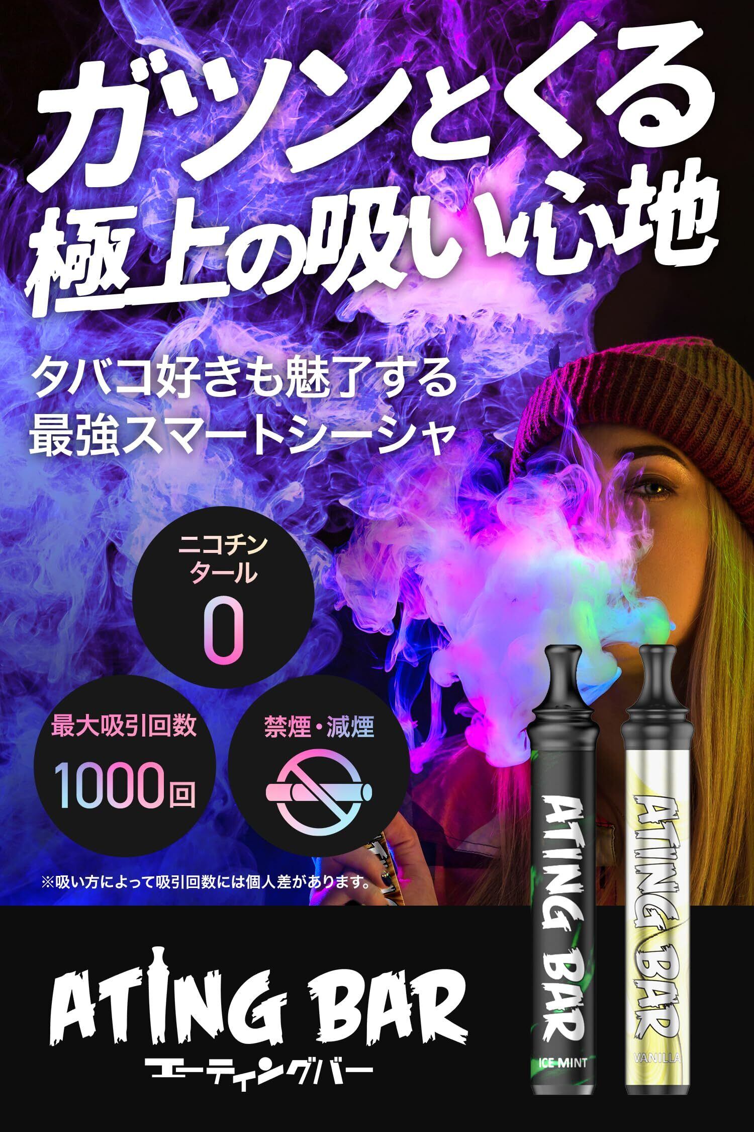 【公式】エーティングバー 持ち運びシーシャ 1000回パフ ニコチン&タールzero 使い捨て 電子タバコ VAPE ベイプ 水タバコ 禁煙 サポート 爆煙 (1本, ミントチョコレート)