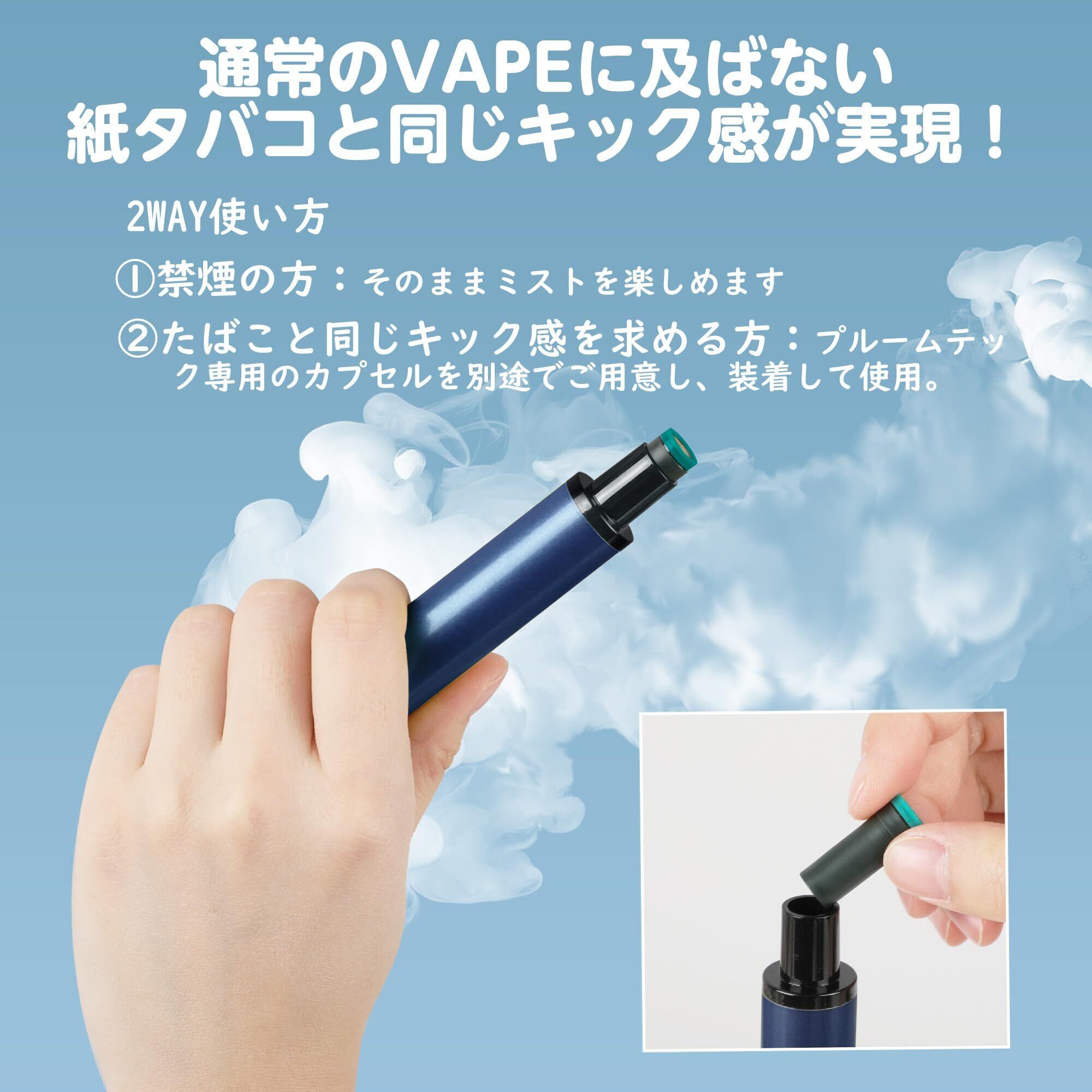<紙タバコと同じ吸い応え>たばこ葉が詰まったプルームテックカプセルに使用できるので、通常のVAPEに及ばない強いキック感が実現!禁煙の方はカプセルなしでそのままミストも楽しめます。