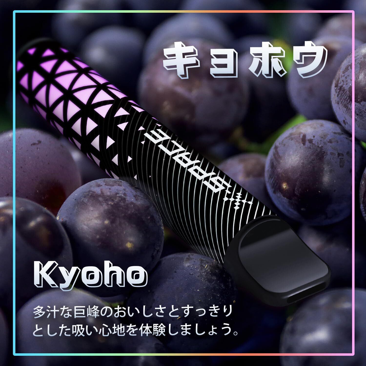 ①シーシャ感覚で手軽に蒸気を楽しめる使い捨てベイプ、キョホウ風味:多汁な巨峰のおいしさとすっきりとした吸い心地を体験しましょう。
