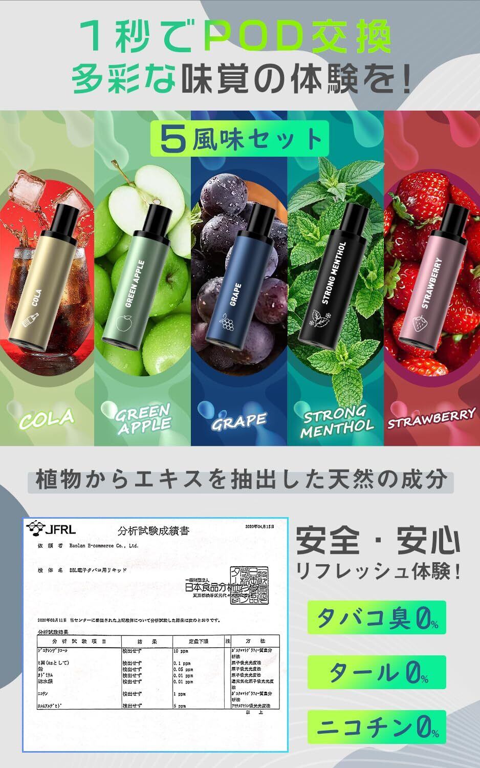 風味 ストロング メンソール(STRONG MENTHOL)、巨峰(GRAPE)、ストロベリー(STRAWBERRY)、グリンアップル(GREEN APPLE)、コーラ(COLA)