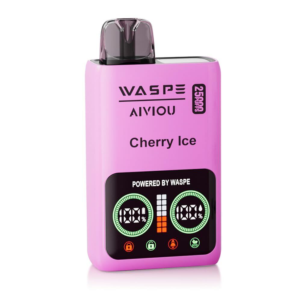 【正規品】 使い捨て電子タバコ25000回吸引 WASPE メッシュコイル E-リキッドとバッテリーの残量表示 25ml 大容量 Type-C 爆煙 持ち運び シーシャ ニコチンなしタバコなし (チェリー アイス)