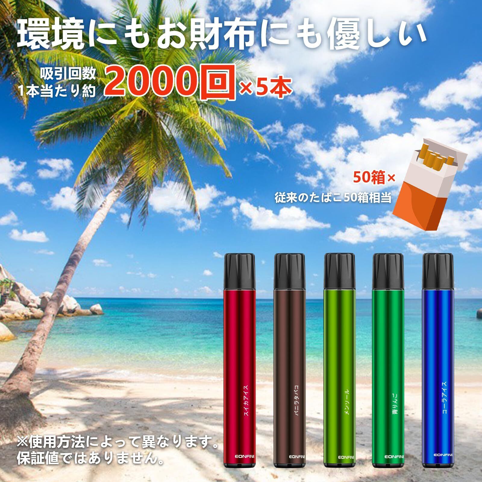 Eonfine 電子タバコ 使い捨て vape ベイプ 10000回吸引可能 5風味セット 禁煙パイポ 禁煙グッズ 水蒸気タバコ 禁煙 電子たばこ ビタミン入り ニコチンゼロ