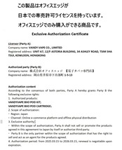 仕様: デバイスパラメータ サイズ:25 * 15 * 114.2mm 出力電力:5-35W エアフローコントロール:サイドエアフローインテーク 内蔵バッテリー:1000mAh 充電:5V / 1A、Type-C 材質:アルミニウム合金+ PCTG カートリッジパラメータ サイズ:25 * 15 * 36mm カートリッジ容量:2ml 抵抗:0.6Ω /0.8Ω リフィル:トップフィル 素材:PCTG