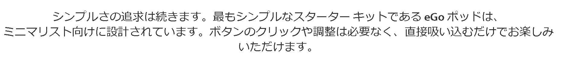 各セット内容: 1個 eGo ポッドバッテリー 1個 eGo ポッドカートリッジ 1個 USB ケーブル 1個 E-リキッドボトル 1個 クイックスタートガイド 1 個 カード 1個