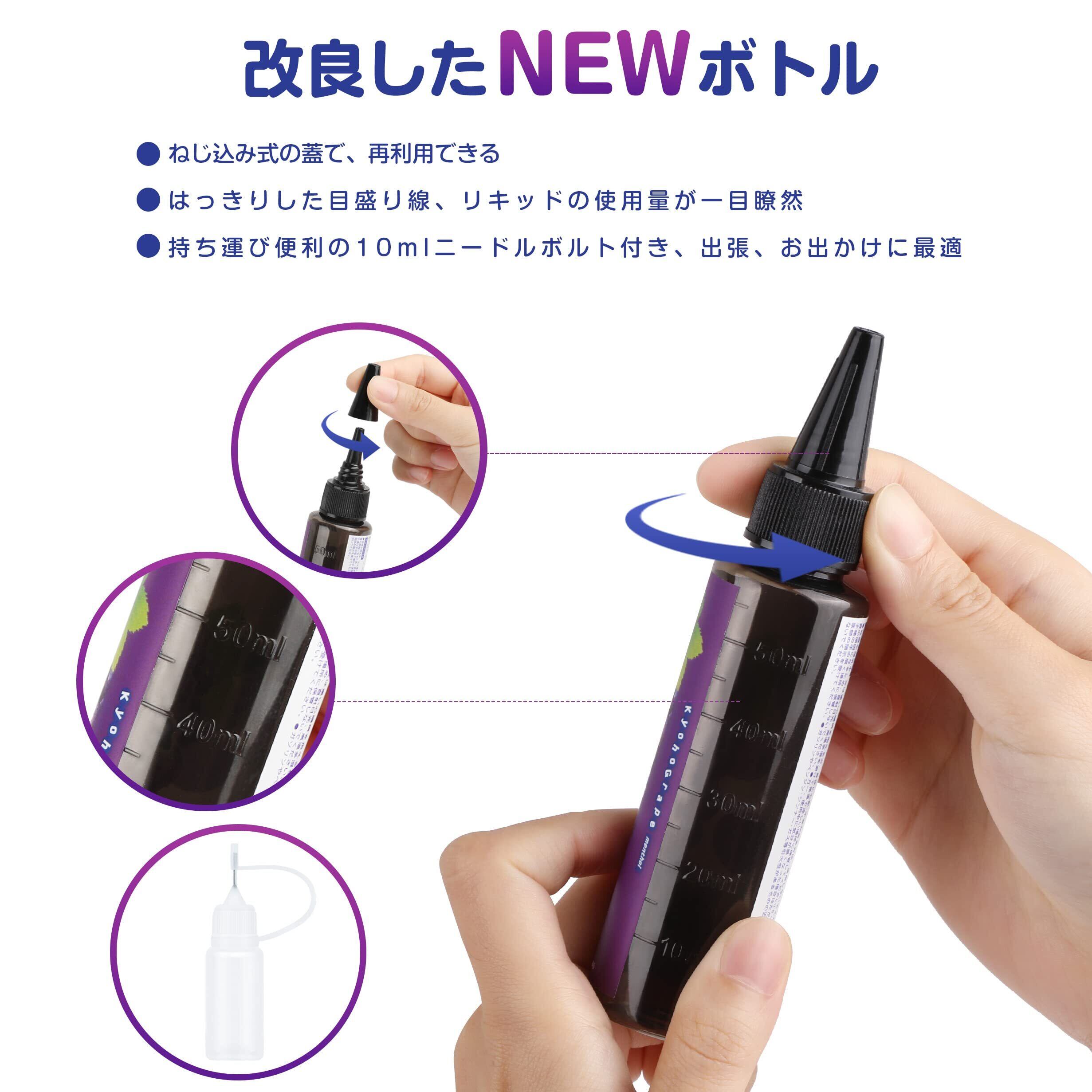 【大容量60ml x 3本、お得セット】180ml大容量=60ml x 3本 巨峰リキッドでお得です。調合率:PG50:VG50。