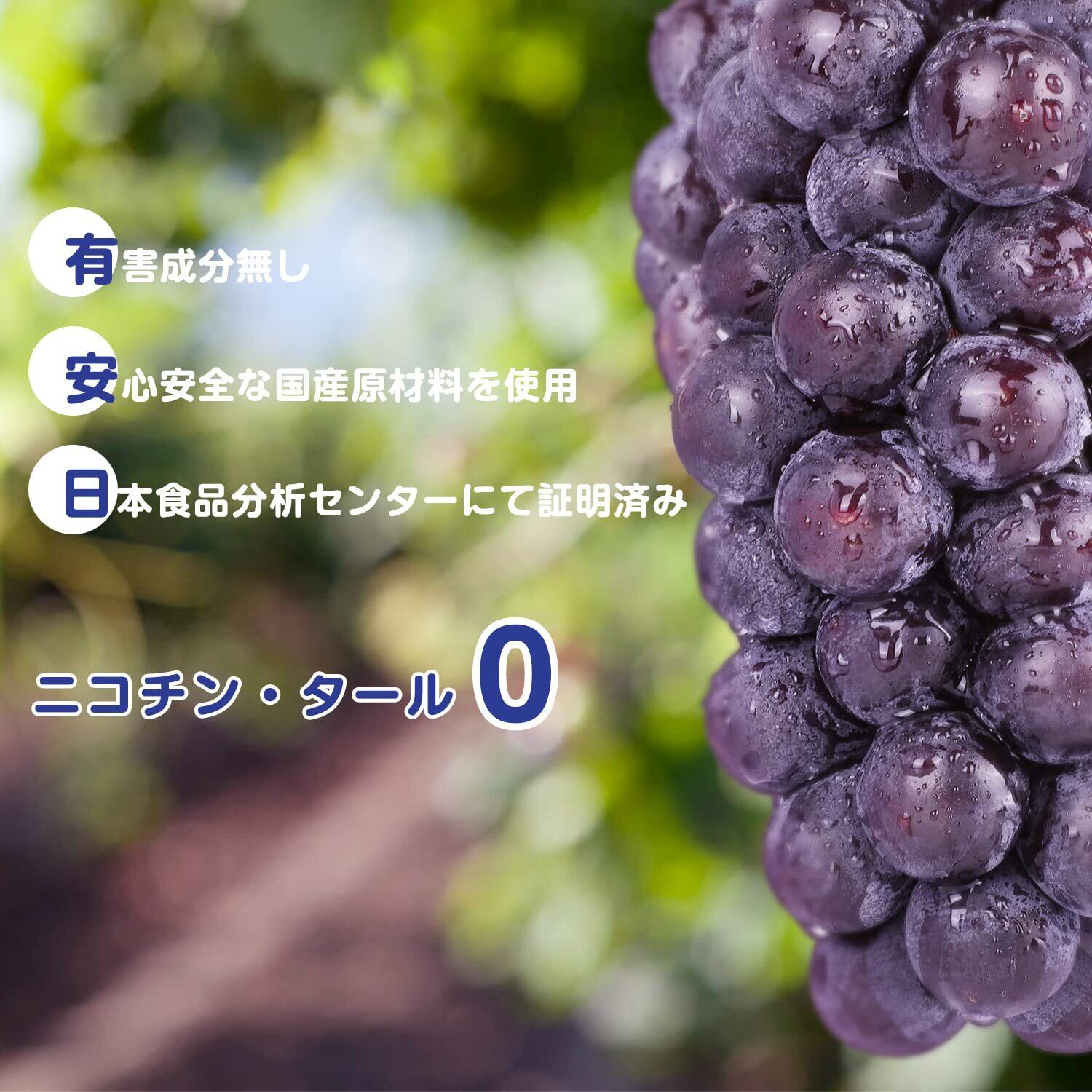 【巨峰葡萄メンソール風味】完熟した巨峰葡萄の濃厚な香りと適量メンソールとの組み合わせで、目覚ましい衝撃感を与えます。 みずみずしいぶどうの感じを味わい、すっきりとした後味で気分転換できるフレーバー。