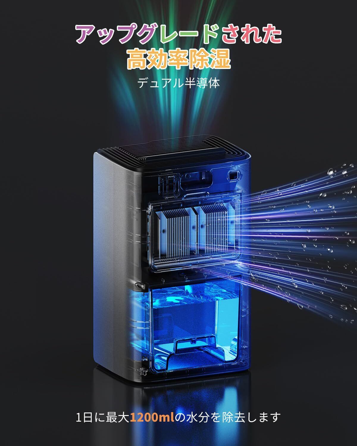 【多様なスペースに最適】鉄筋20畳 / 木造10畳の部屋、浴室、小型地下室、寝室、クローゼット、キャンピングカー、キッチンなどに適しています。湿度を45%以下に維持し、高湿度による不快感やカビの発生を防ぎます。これにより、より清潔で健康的な室内環境を実現します