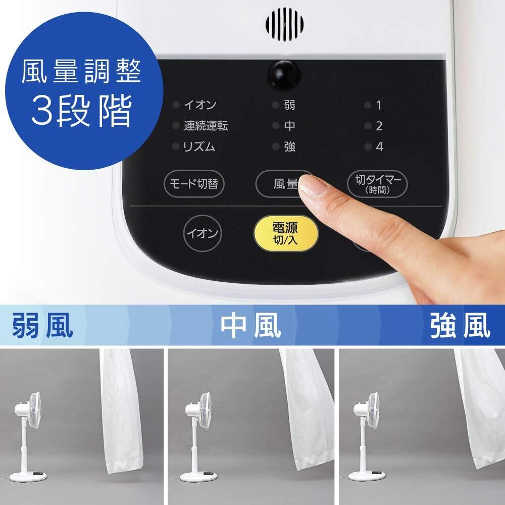 連続モード・リズム風モードはそれぞれ3段階の風量調節ができます。
